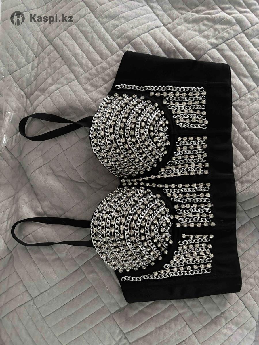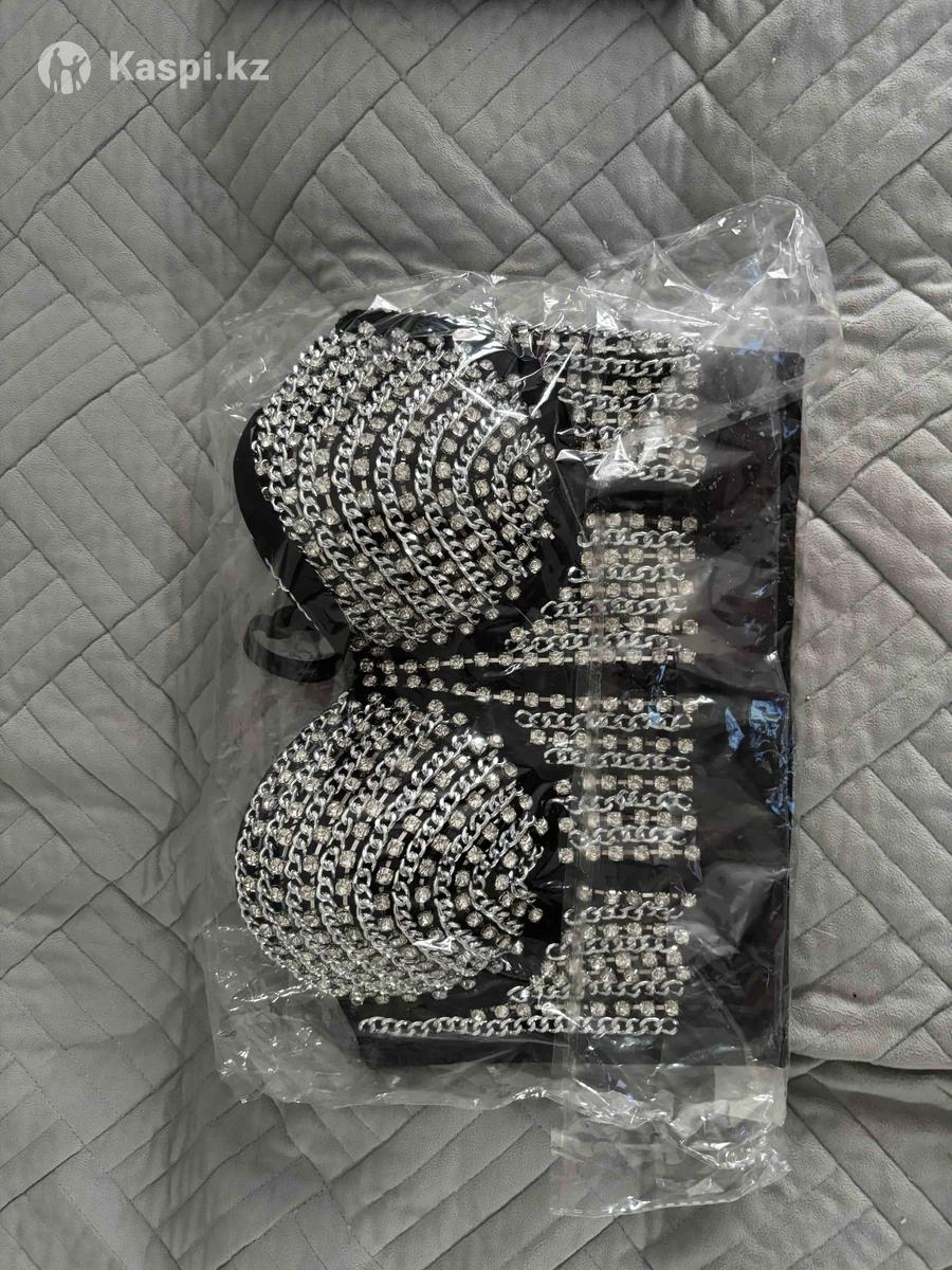 Топ с камнями и цепями (новый) Эффектный черный топ с декором из страз и металлических цепей. Смотрится очень ярко и стильно — идеально для вечеринок, фотосессий, сценических образов или смелых выходов. ✨ Новый, с биркой ✨ Размер M ✨ Качественный плотный материал ✨ Камни и цепи хорошо закреплены ✨ Очень красиво подчеркивает зону декольте 📌 Причина продажи: мне оказался большой. Цена: 16 500 тг Возможен разумный торг.
