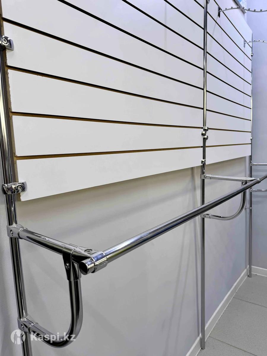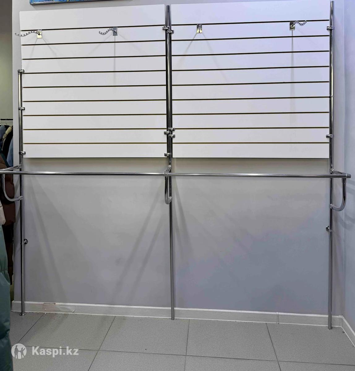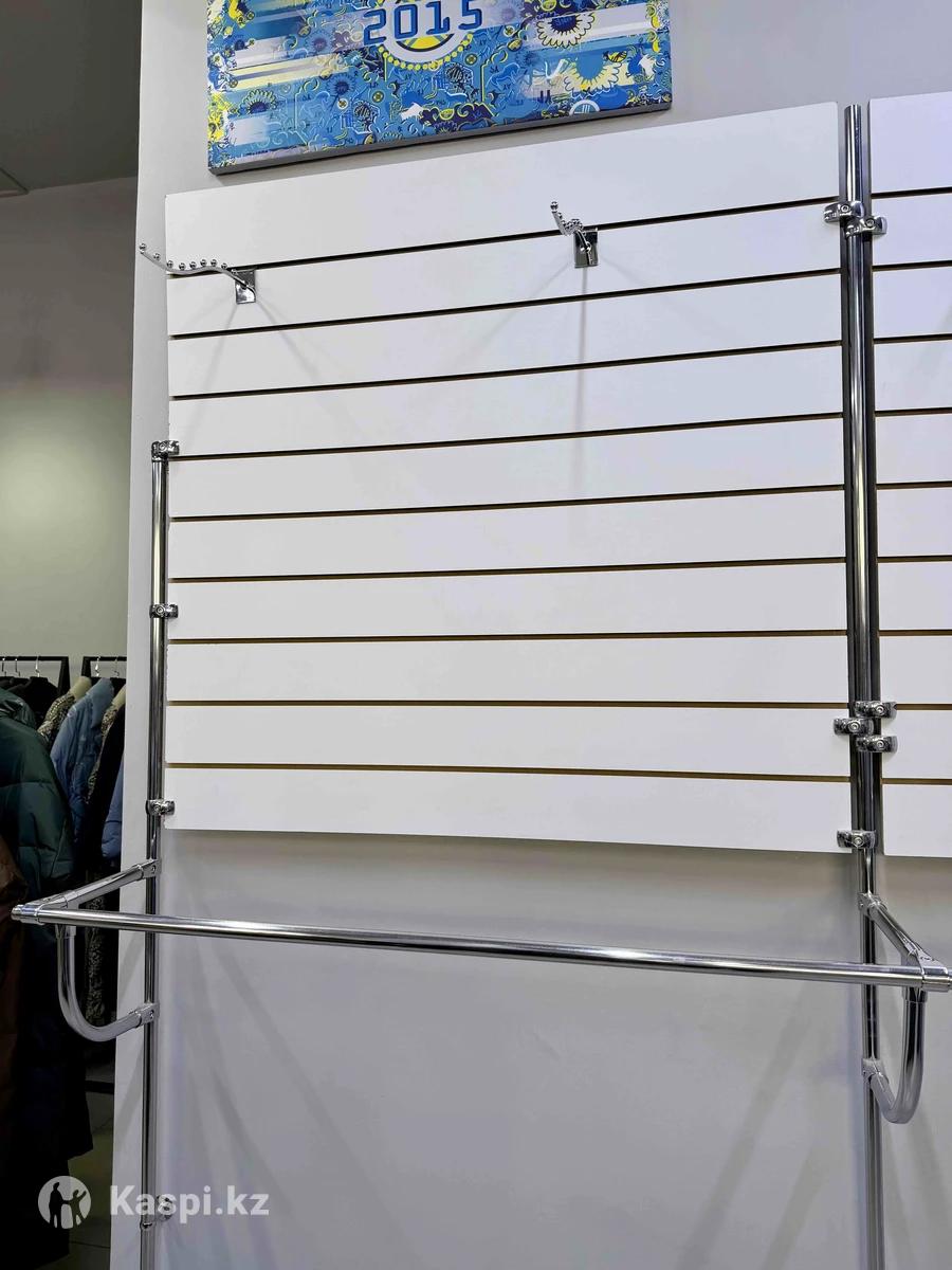 Продаётся торговое оборудование для магазина одежды. Стеновая система со слат-панелями и металлическими стойками. В комплект входят штанги для размещения одежды. Подходит для магазина одежды, бутика или шоурума. Удобно размещать куртки, костюмы и другую одежду. Состояние отличное, всё крепкое и аккуратное. Цена: 90 000 тг. Самовывоз.