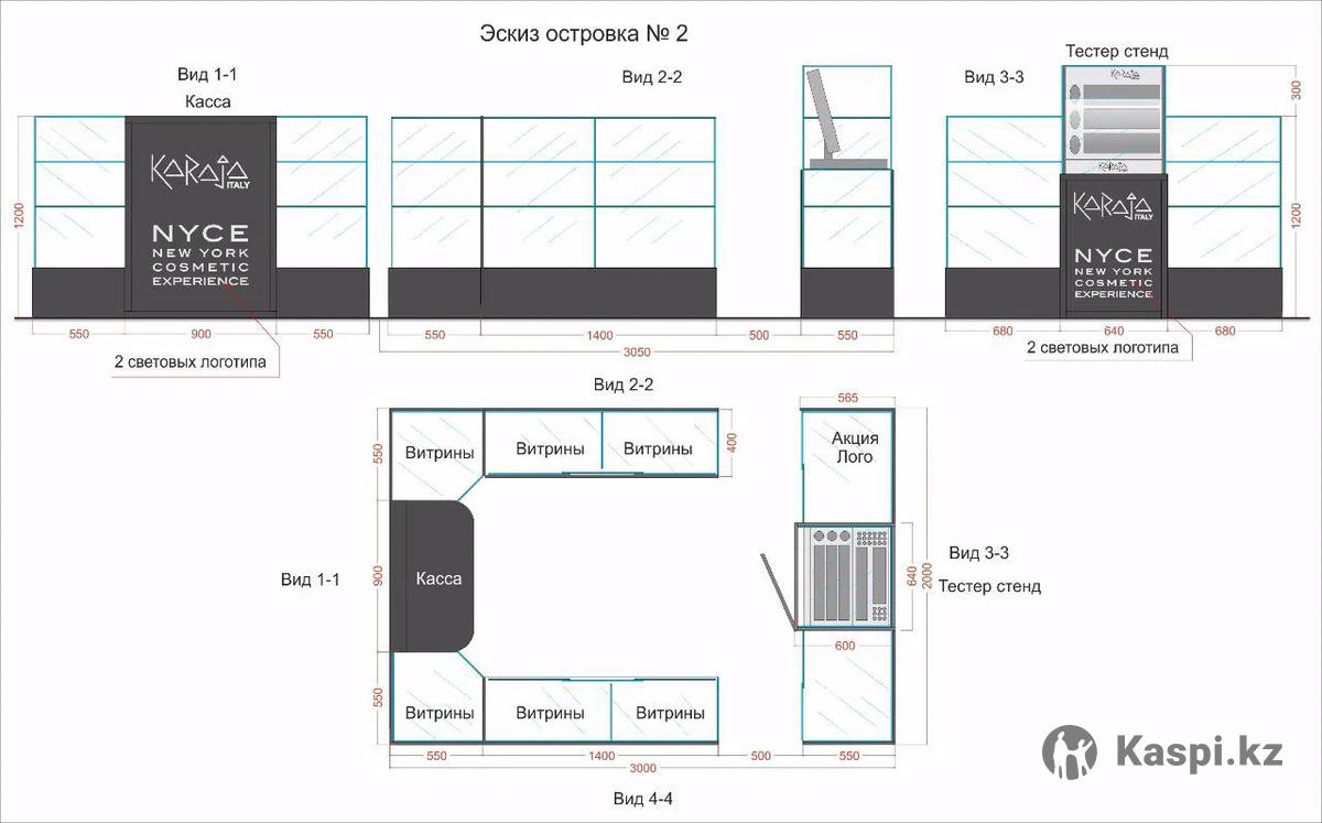 Торговое оборудование «Стенд-Островок» отличного качества и состояния, был в эксплуатации 6 месяцев, 4х секционный, открытый. Можно проходные части закрыть панелями. Преимущества 1. - Удобные ящики для хранения, лучшего доступа к товару. Преимущество 2. – Официальные утвержденные чертежи, полный комплект, как обязательное условие ТЦ. Предусмотрено рабочее место продавца, место для тестирования продукции, рекламы. Витрины внутри белые. Внешняя нижняя сторона – черное стекло. Буквы Логотипа – на 2х стороннем скотче, снимаемые. Самовывоз. Стоимость 450 тыс тг. Срочно, торг Возможна покупка секционно – 200 тыс тг за 1 ед. Возможна аренда – 80 тыс /мес Возможна аренда с сотрудничеством с нашими брендами – 50 тыс/мес Тел. +. Ольга