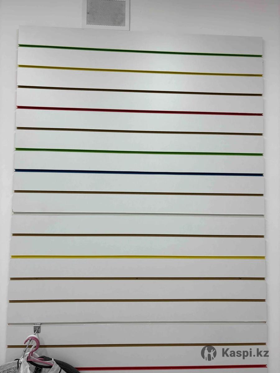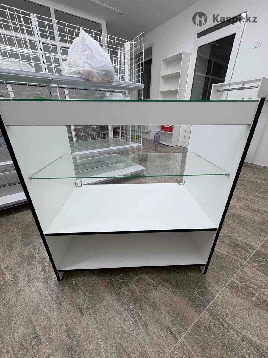 Продам металлические торговые стеллажи, витрины, ресепшн, панели настенные, рейлы Стеллаж двусторонний на 4 полки, высота 170, длина 200, ширина 75 см, ширина полки 30 см. Цена 40000 Витрина стеклянная размер Ш80/В90/Г50, 3 полки, 2 шт. Новые. Цена за одну 15 тыс Вешалка горизонтальная, длина 190, высота 180, 2 штуки по 1000 тнг