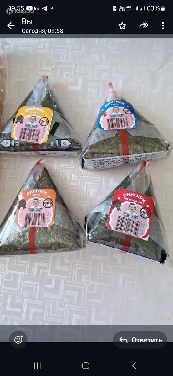 Предлагаем свежие онигири (корейский фастфуд, разновидность суши) и панини (итальянская кухня). Цена для магазина — 500 тг, в рознице хорошо продаются по 800 тг. ✅ Даем продукцию на реализацию ✅ Срок годности — 3 дня ✅ Хранение в холодильнике ✅ Доставка через день. Первая пробная партия: 10 онигири + 10 панини. 📞 Телефон для связи: