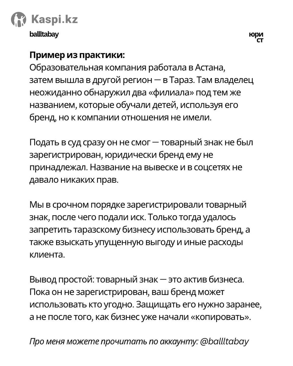 Если у вас есть название на вывеске или страница в Instagram — это еще не значит, что бренд ваш. Без зарегистрированного товарного знака любой может оформить это название на себя и законно запретить вам использовать его дальше. На практике так «отбирают» бизнесы: вывеску, аккаунты, домены. Регистрация товарного знака — это единственный юридический способ закрепить бренд за собои и защититься от копирования и захвата. Мы оказываем услуги по регистрации товарных знаков профессиональными юристами. На сегодняшний день зарегистрировано более 30 товарных знаков. В случае отказа по регистрации — гарантируем возврат оплаченной суммы. После регистрации можем дальше сопровождать ваш бизнес по другим юридическим вопросам на выгодных условиях.