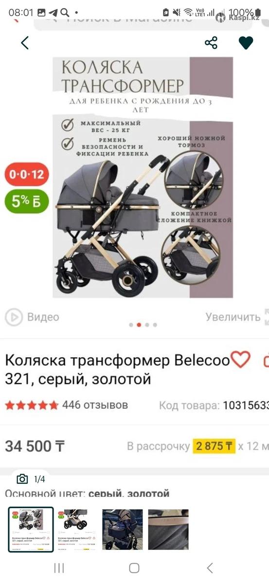 Коляска трансформер Belecoo (серо-золотая) СРОЧНО! ТОРГ Цена: 15 000 тг Торг до 10 000 возможен Подходит от 0 до 36 месяцев Все работает, ремни целые Ребенок спал в ней до года, На улице была всего 7 раз! Причина продажи: не хочет сидеть, хочет бегать:) Есть потертость в районе ног, фото в карусели Пишите в — скину подробные фото и видео Торг при быстрой покупке Забираете сразу — 10 000 тг! Если заберете вместе с манежем, за все 15 000тг (смотреть все объявления)