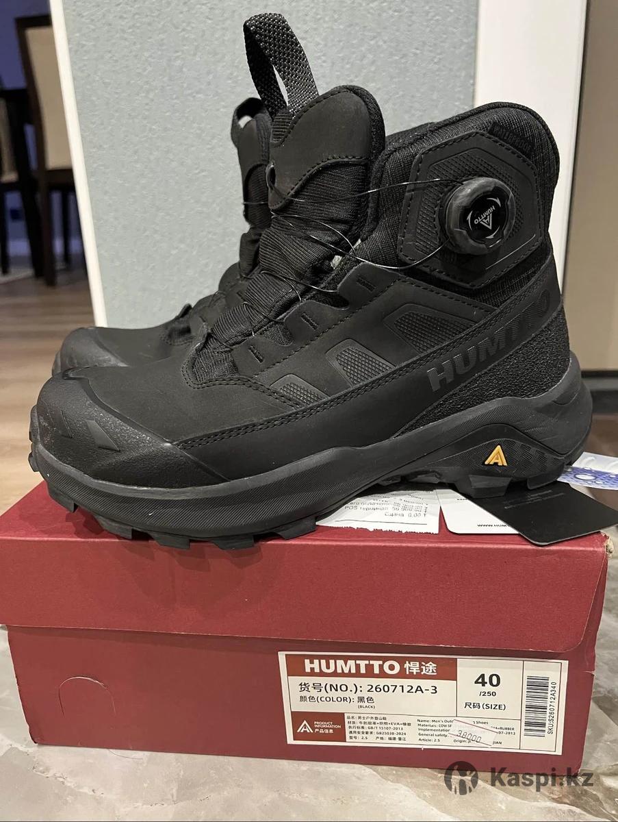Продам треккинговые ботинки HUMTTO Для любой погоды Астаны: снег, слякоть, гололёд не проблема. - Не скользят - Не пропускают воду - Держат тепло - Натуральный нубук - Металлические шнурки, агрессивный протектор Качество: неубиваемые танки Размер 40 (маломерят, подойдут на 39-39,5) Цена: 30 000 тг (брал за 38 000) Причина продажи: маловаты