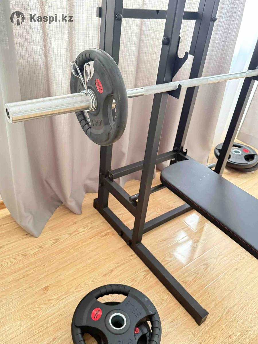Продаю домашний силовой тренажёр в отличном состоянии. Подходит для жима лёжа, подтягиваний, отжиманий на брусьях, приседаний со штангой и других упражнений. Прочная конструкция, удобная скамья. Идеален для домашних тренировок. В комплекте: - Скамья - Штанга - Блины (диски) - Турник - Брусья Цена: 200 000 тенге (всё включено) Находится в Актау. Тел/: Үйге арналған күштік тренажер сатамын. Жағдайы өте жақсы. Жаттығулар: жату кезінде штанга көтеру, турникке тартылу, брусьямен итеру, штангамен отырып-тұру және тағы басқа. Мықты құрылым, жайлы орындық. Үйде жаттығуға өте қолайлы. Жиынтықта: - Орындық - Штанга - Дискілер - Турник - Брусья Бағасы: 200 000 теңге (бәрі бірге) Орналасуы: Ақтау Тел/: