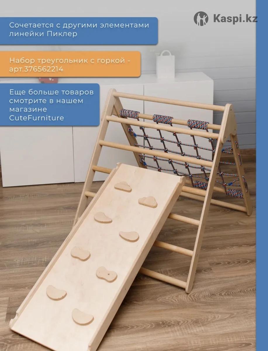 Продам в отличном состоянии треугольник Пиклер с канатом и горка-скалодром. Треугольник складной. Выдерживает до 100кг. Высота горки 100см, ширина 39. Высота треугольника 80см, ширина 73см. Материал массив березы, очень качественно сделано. Продаю потому что ребенок вырос, нужно уже что-то побольше) Цена окончательная, если нужны фото/видео пишите на .