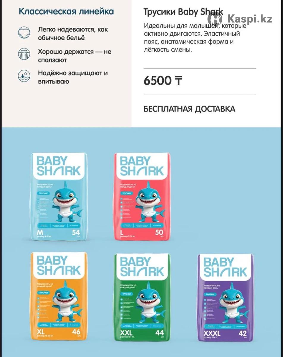 Подгузники и трусики “Baby shark” Салфетки в подарок к каждому заказу Бесплатная доставка