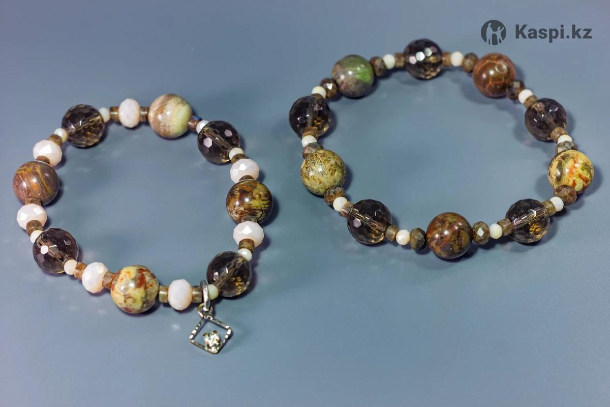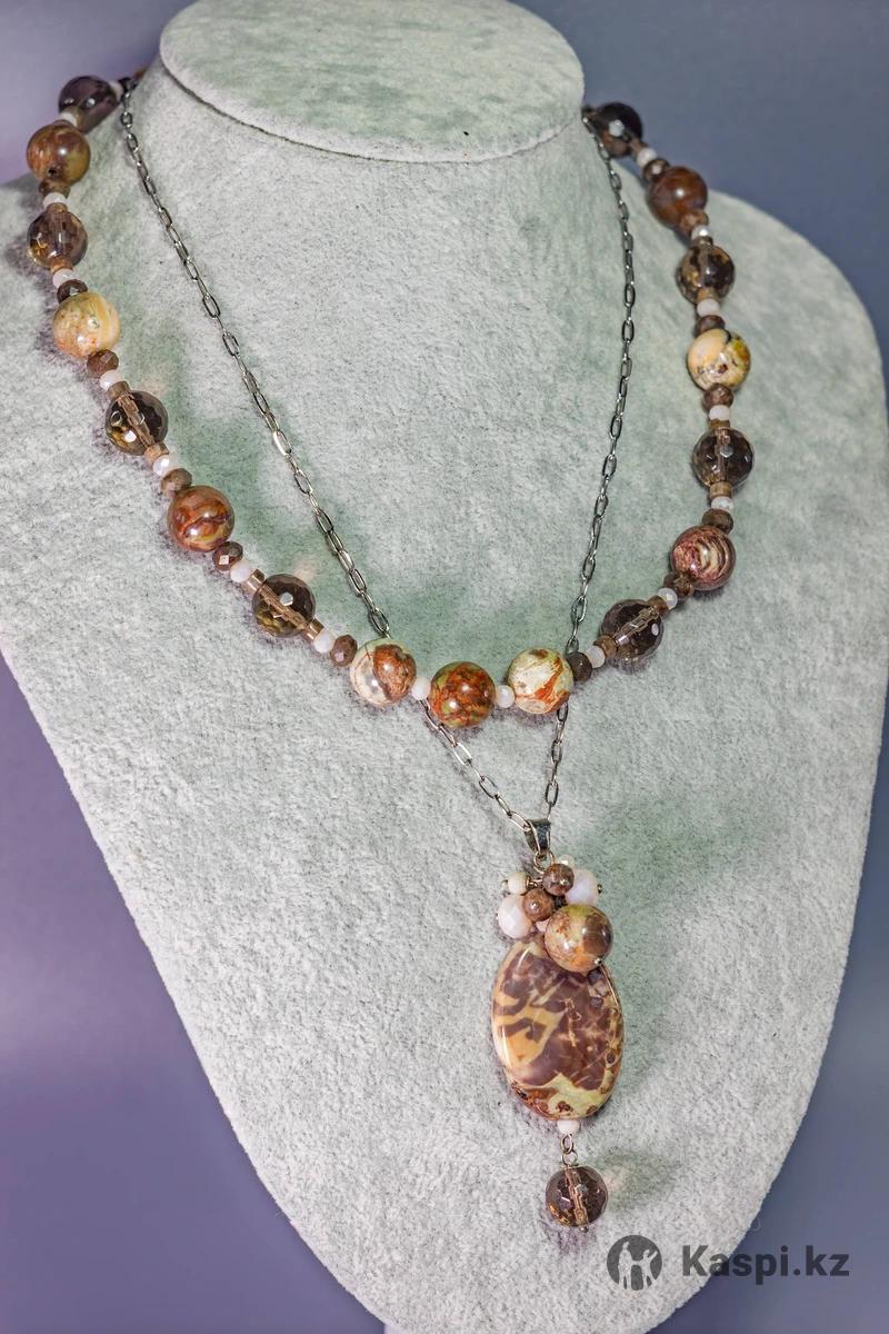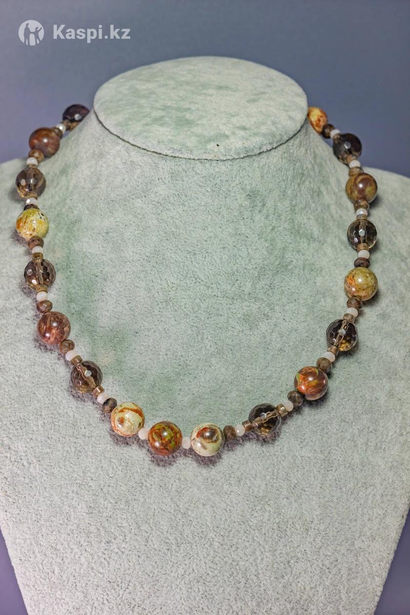 Фловер (цветочный, пестрый) агат, кофейный лабрадорит, раухтопаз, хрусталь. Комплектуется в разных вариантах.