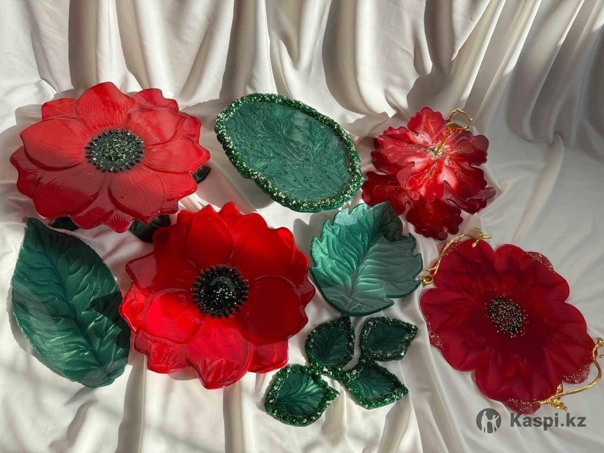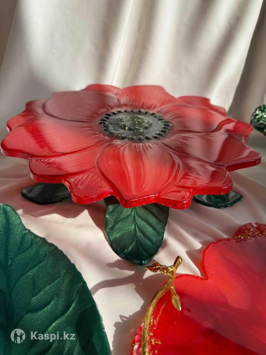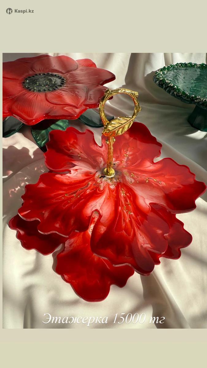 Ручная работа из эпоксидной смолы цветочный посуда набор 106000 тг Можно брать по одному штуку Тортница 18000 тг Фруктовница 14000 тг Поднос 15000 тг Этажерка 15000 тг Салатница 10000 тг Овальная 15000 тг