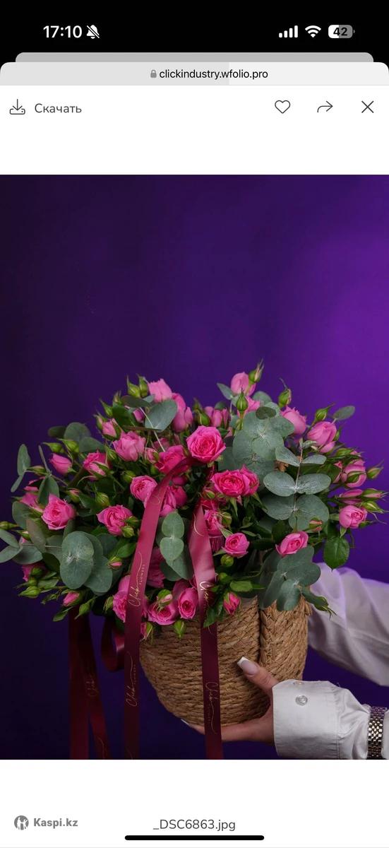 Цветы малиновые кустовые розы в кашпо