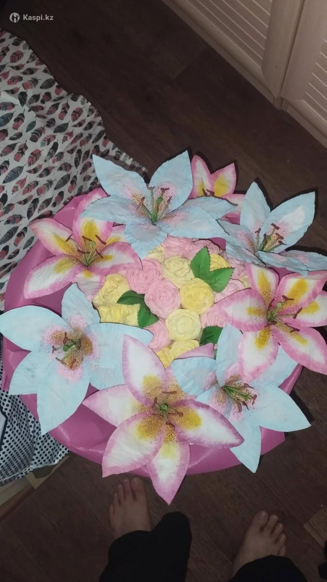 Делают цветы и салфеток и бумаги На данный момент делаю цветы без упаковки Заказ делается от 10 и т.д дней Зависит от самого заказа и какие цветы вы хотите Предупреждать заранее о вашем заказе Пишите в сообщении в свои предпочтения Все спасибо большое