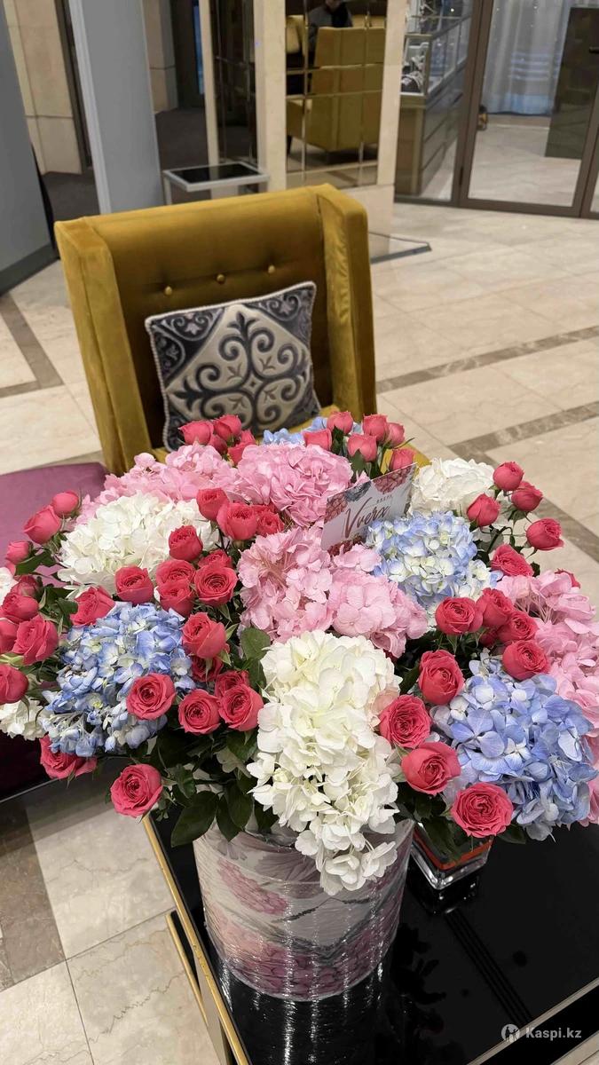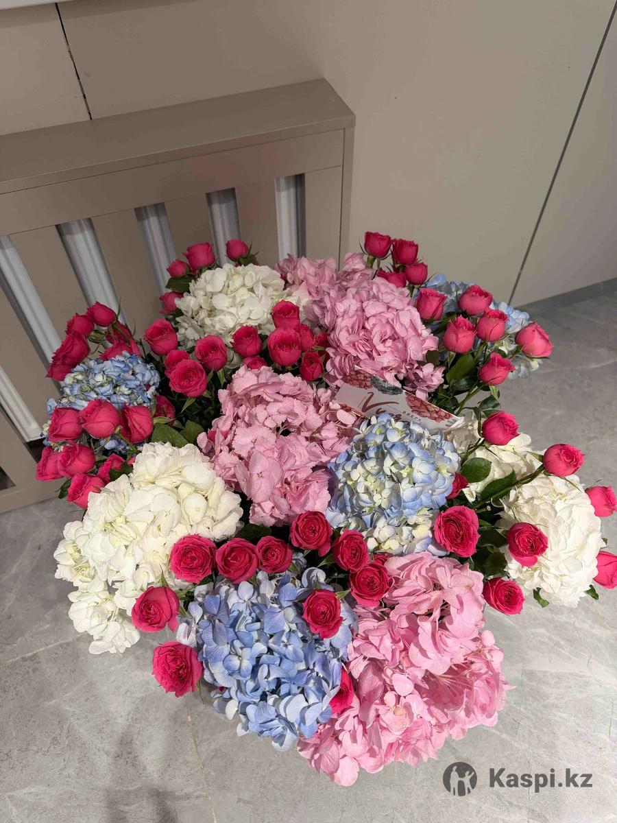 очень красивый большой букет,гортензии и розы