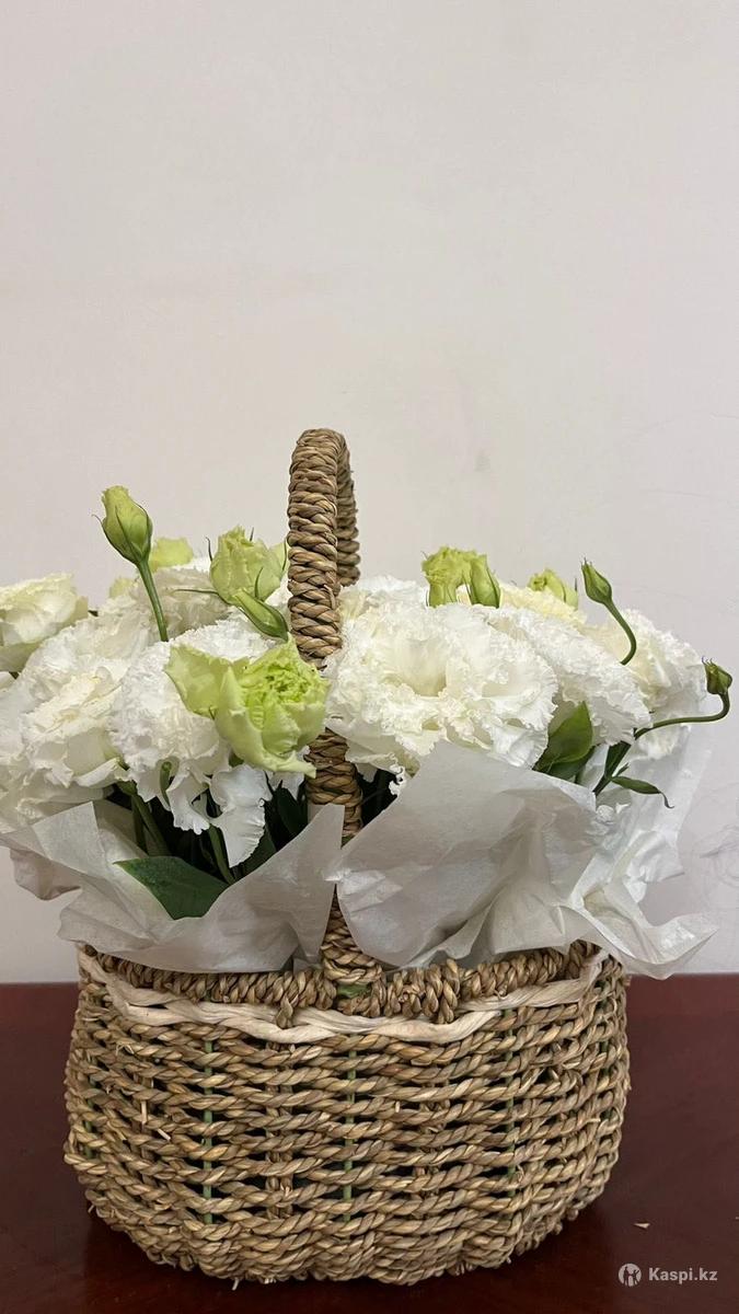 Цветы в корзине из белых эустомы