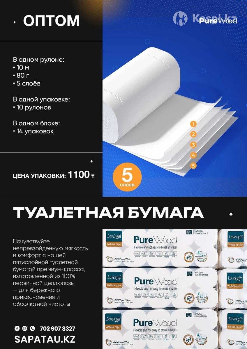 ТУАЛЕТНАЯ БУМАГА ПО СУПЕР ЦЕНЕ! Оптовые закупки для кафе, ресторанов, офисов и дома! Забудьте о нехватке бумаги. Выгодные цены при больших объемах — чем больше берете, тем ниже цена за рулон! Бесплатная доставка по Алматы Экономично, удобно, практично — для бизнеса и дома