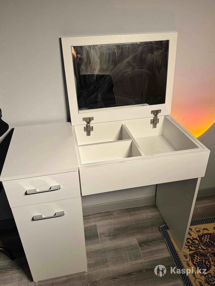 Туалетный столик с зеркалом, покупали за 70тыс тг. Отдаю за 35тыс. тг. Возможен обмен на стеллаж. Состояние отличное. Самовывоз Бостандыкский район