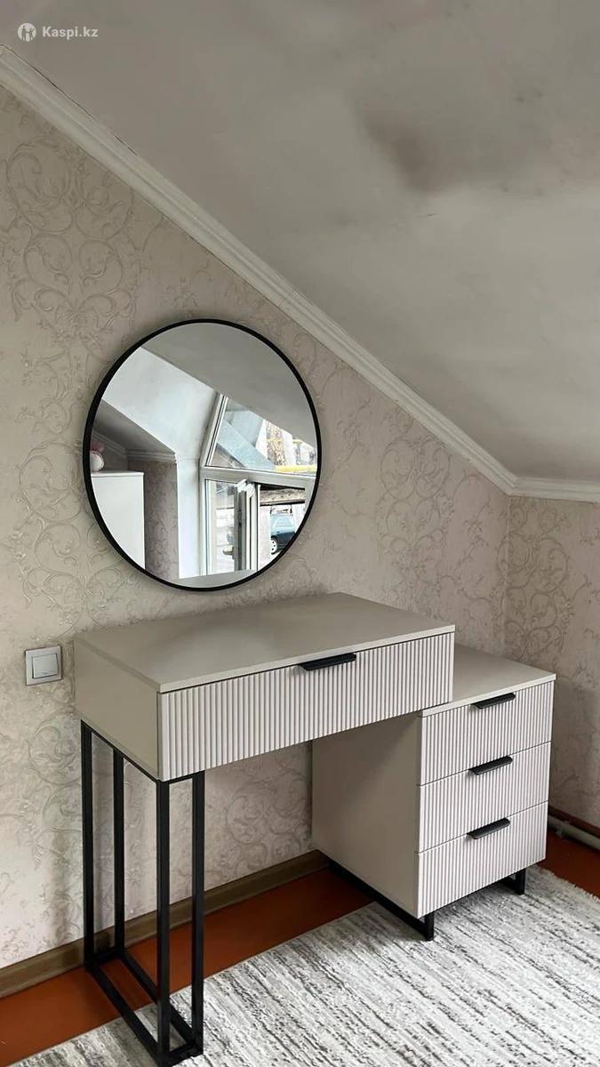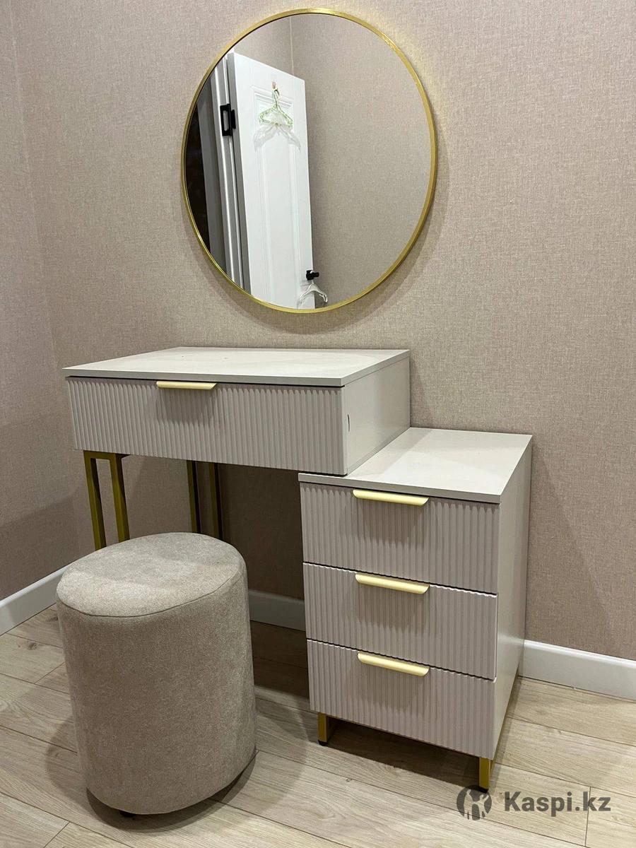 Туалетный столик в наличии и на заказ Материал : МДФ (пленочный) Фурнитура металлическая Размеры 10075см Зеркало - 18.000тг Пуфик - 10.000тг