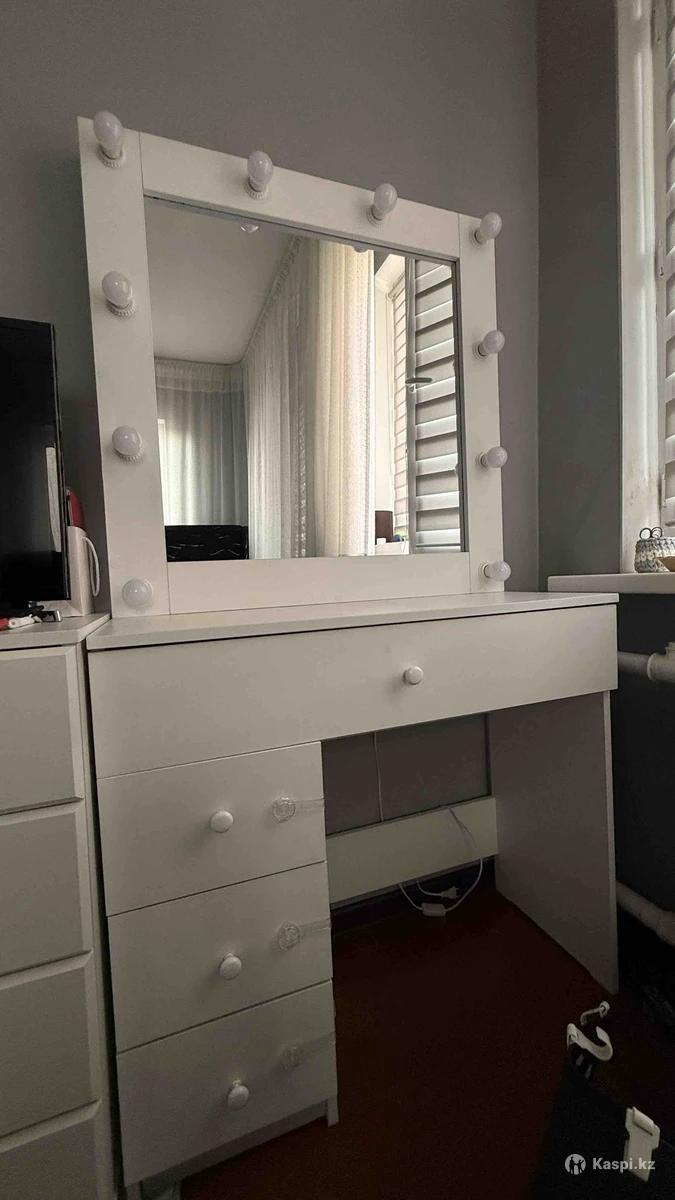 ✨ Туалетный столик с зеркалом и подсветкой ✨ Стильный и удобный столик для макияжа — как в салоне красоты 💄 Идеален для дома, спальни или гардеробной. 🔹 Зеркало с лампочками по периметру — яркое, равномерное освещение 🔹 Вместительные выдвижные ящики для косметики и аксессуаров 🔹 Универсальный белый цвет — подойдет к любому интерьеру 🔹 Все в рабочем состоянии, аккуратно использовался 📐 Размеры: 90 × 40 × 170 см 🪵 Материал: ЛДСП 💰 Цена: 40 000 тг 📦 Самовывоз Отличный вариант по хорошей цене — пишите, отвечу быстро 😊