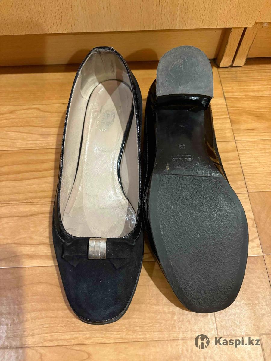 Итальянские туфли henne,замшевые с лакированной окантовкой,б/у,в среднем состоянии,район Луганского-Сатпаева