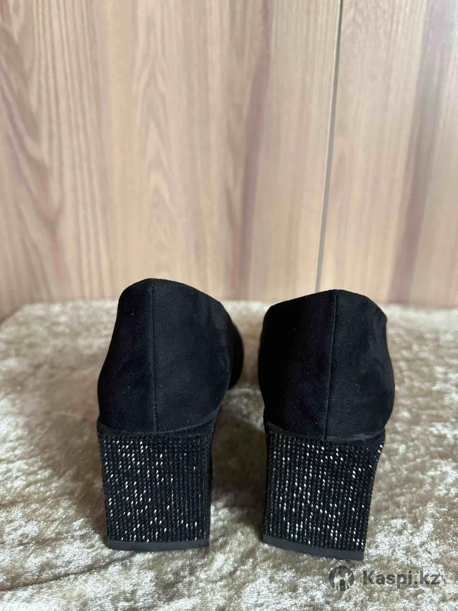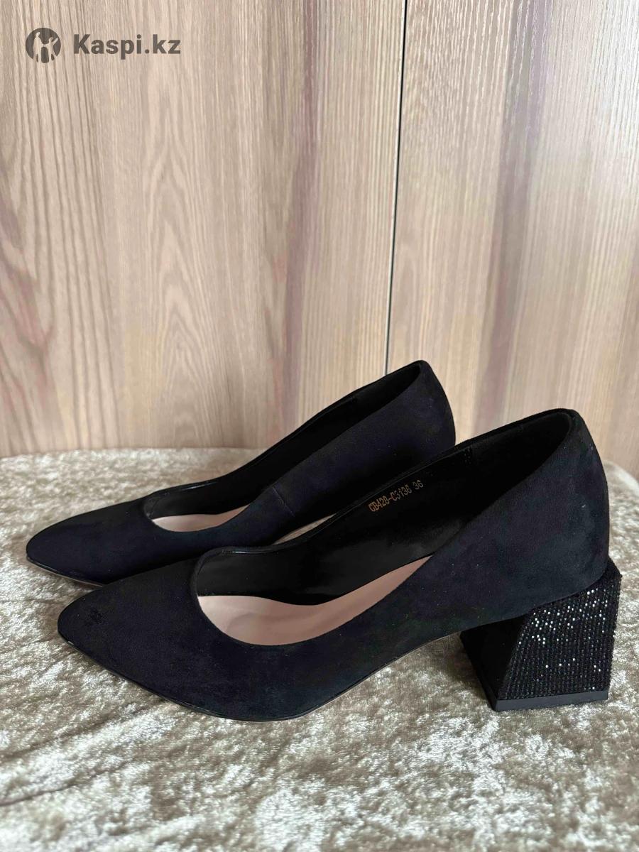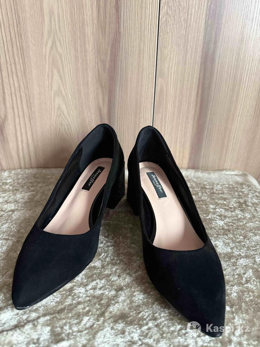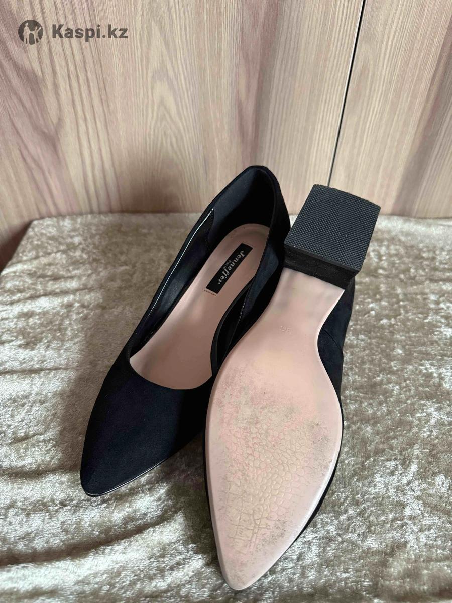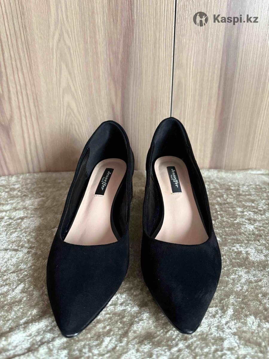 Чёрные туфли Jennifer. Размер 36 (стелька ≈ 23 см). Материал: текстиль под замшу. Только примерялись. Состояние отличное. Устойчивый квадратный каблук, удобная посадка. Подойдут для работы, корпоратива и праздничных мероприятий. Коробка и пыльники есть. Алматы | отправка по РК.