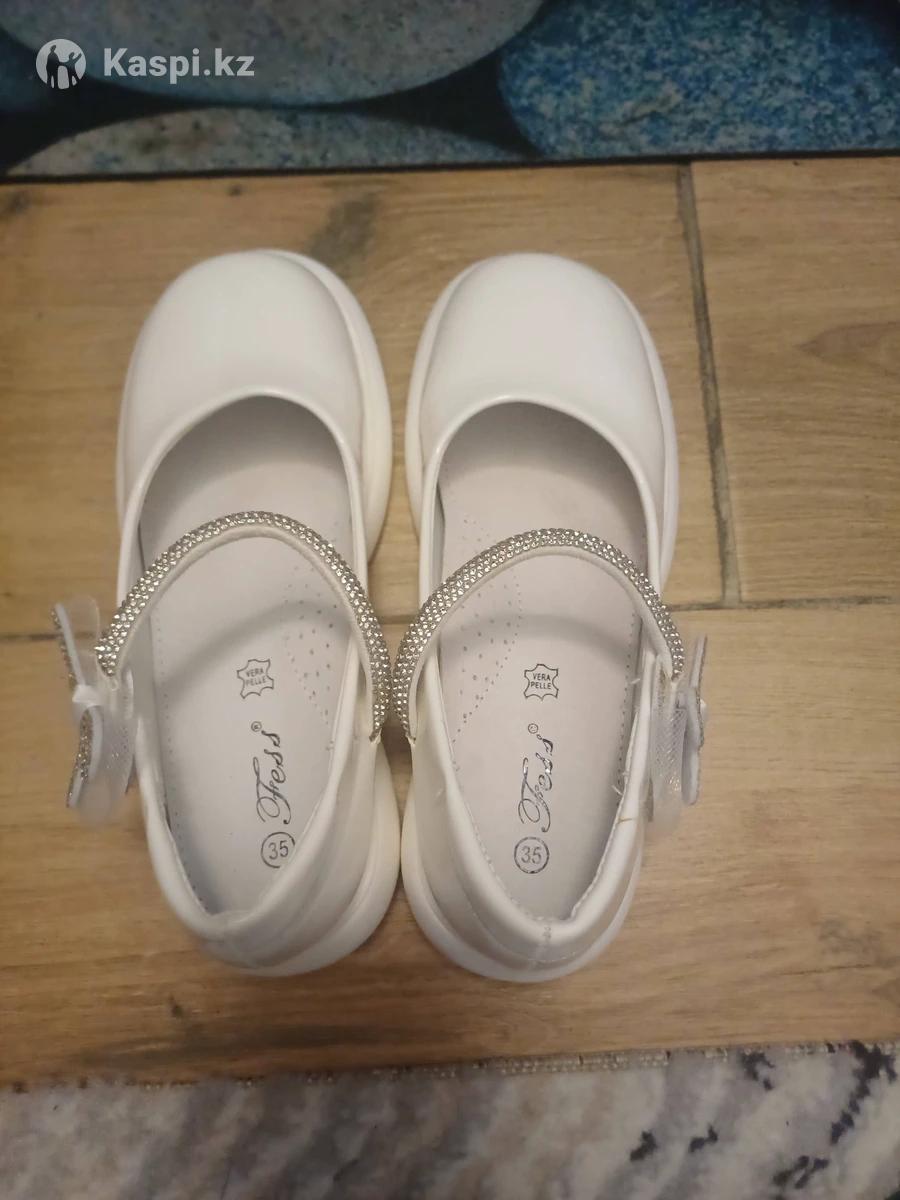 Прекрасные белые туфли на весну/начало лета для девочки. Размер 35, немного маломерят. Надевали на мероприятие в школе, всего 1 раз, потом ноги переросли. Состояние новеньких туфель! Цена 5000 тенге.