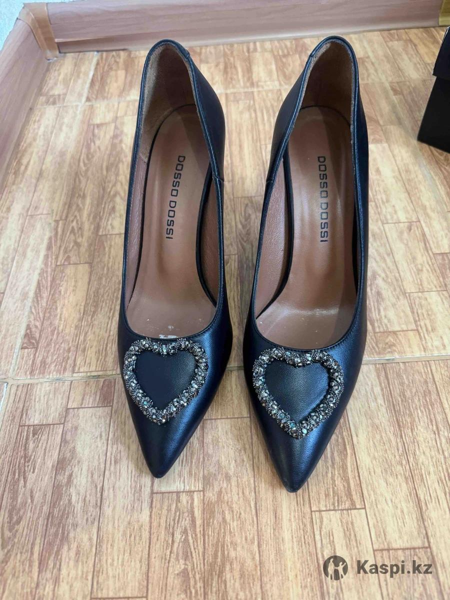 Элегантные черные туфли на высоком каблуке с утонченным острым носиком. На передней части расположены крупные декоративные сердца, оформленные россыпью сияющих страз, что придает модели праздничный и выразительный вид. Плавный силуэт делает стопу визуально изящной, а фирменная форма колодки обеспечивает комфорт при ходьбе. Эти туфли станут идеальным акцентом для вечернего выхода или особого события. Бренд: Dosso Dossi