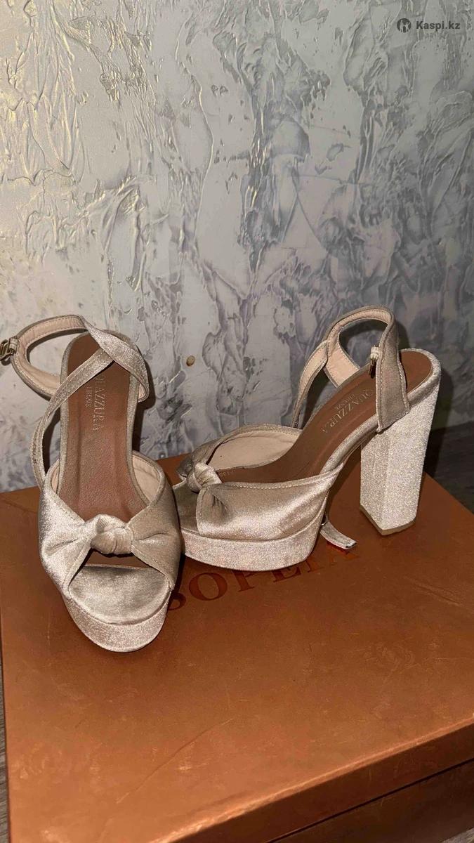 Босоножки, туфли в стиле версаче, каблук удобный, стойки. Бежевый, бархатный
