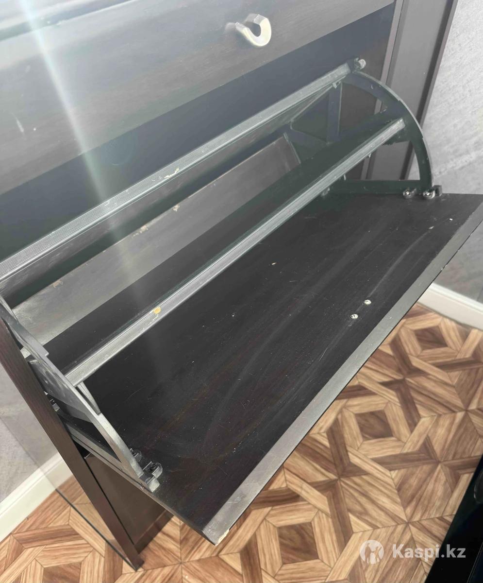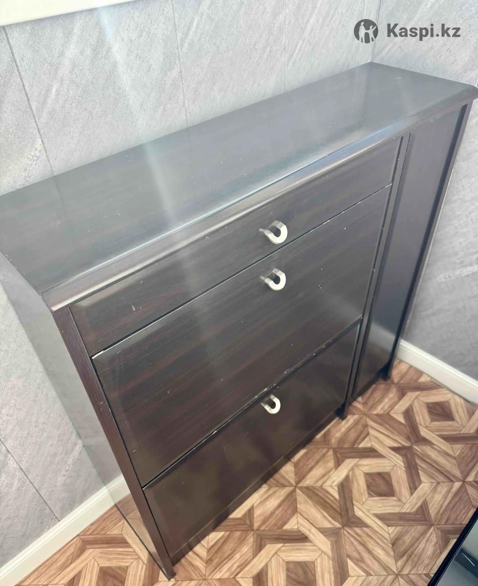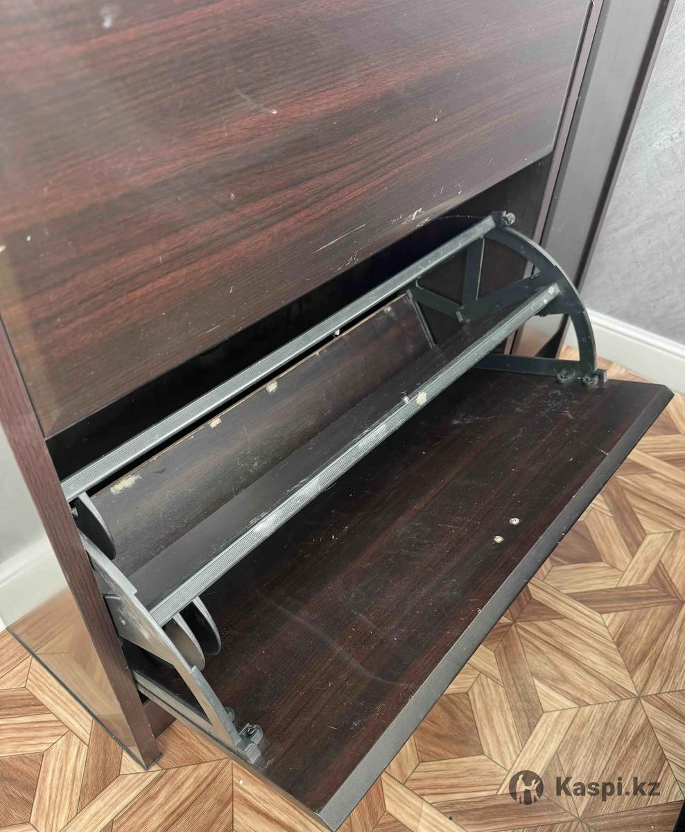 Продам тумбу для обуви. Два откидывающихся ящика, один выдвижной, один открывающийся. Все в рабочем состоянии, есть небольшие потертости. Размеры: длина 84, ширина 25, высота 86 см.