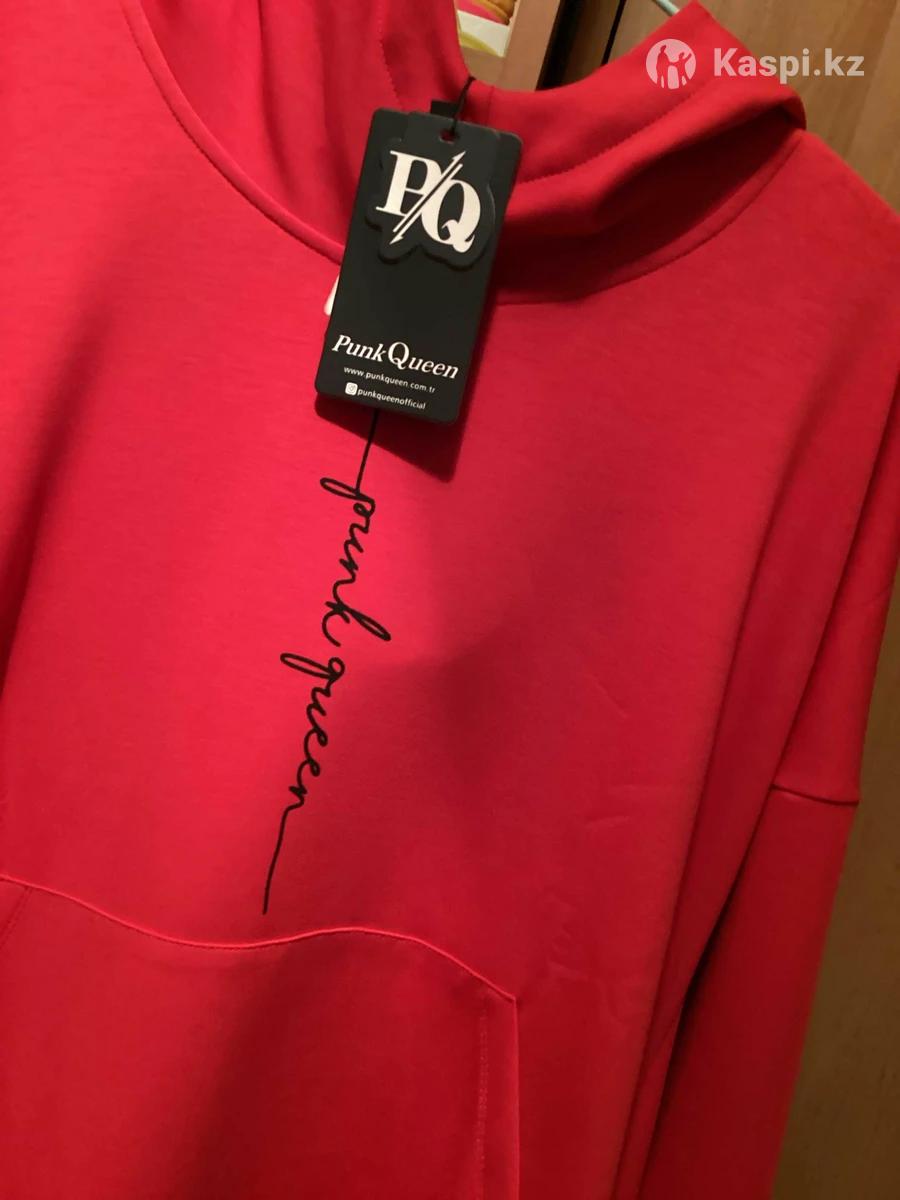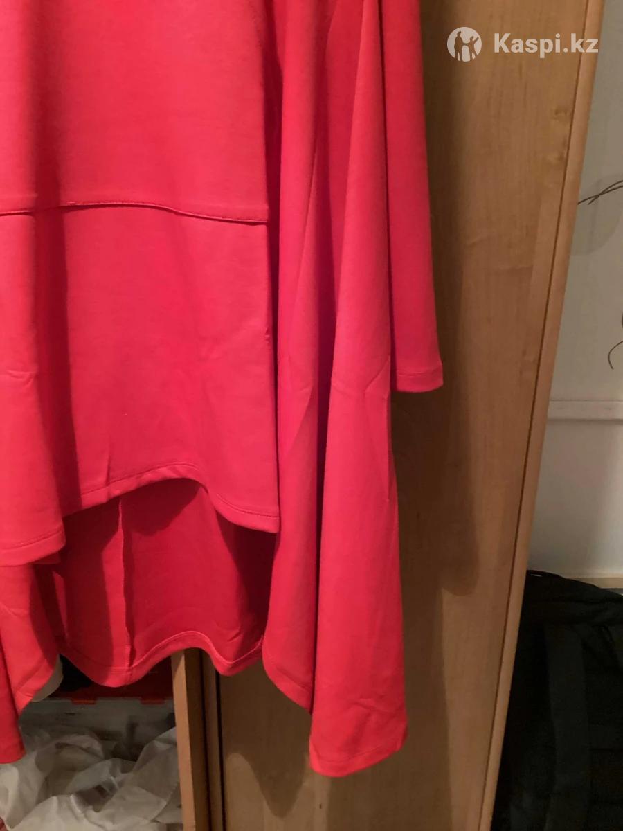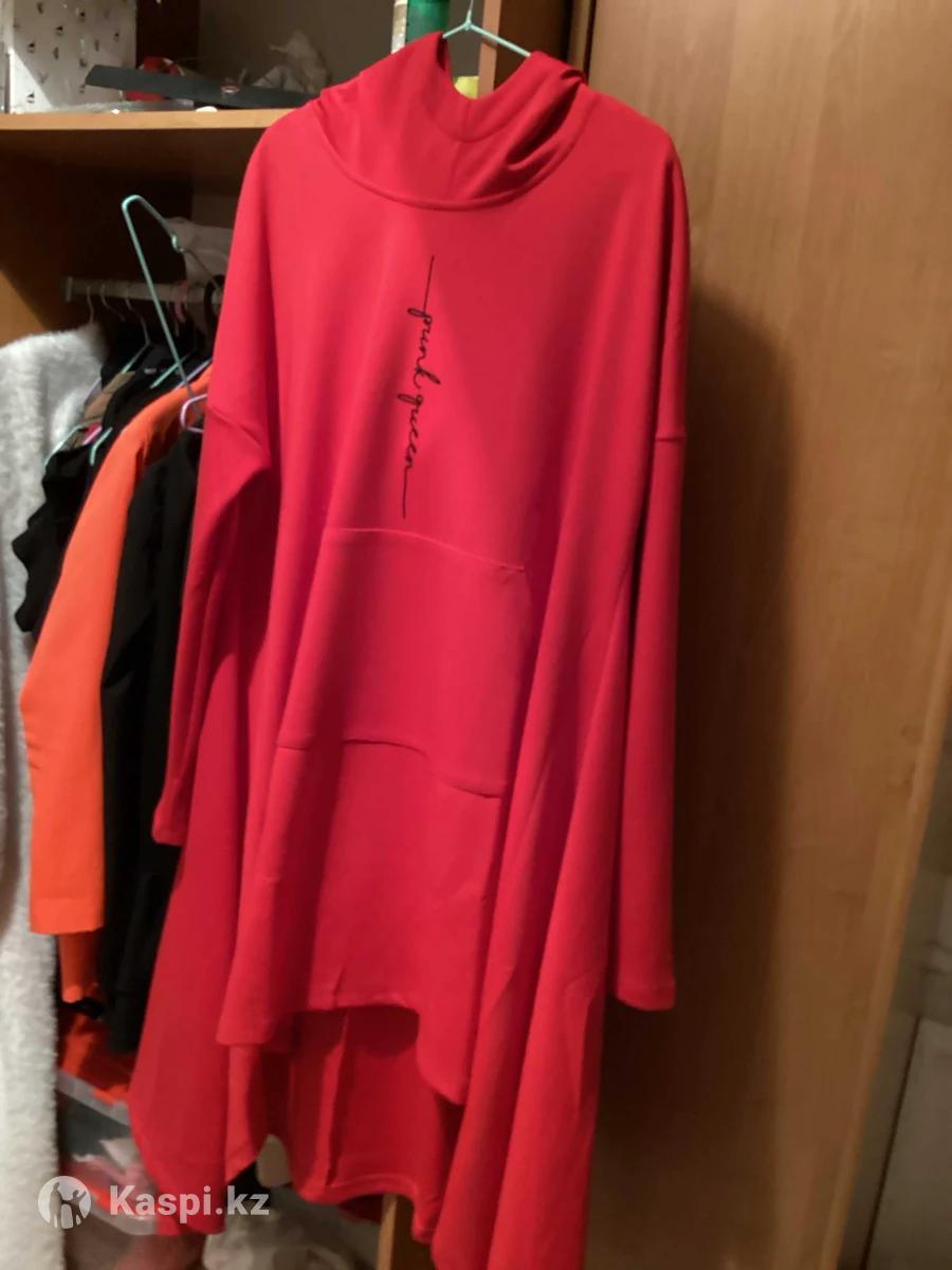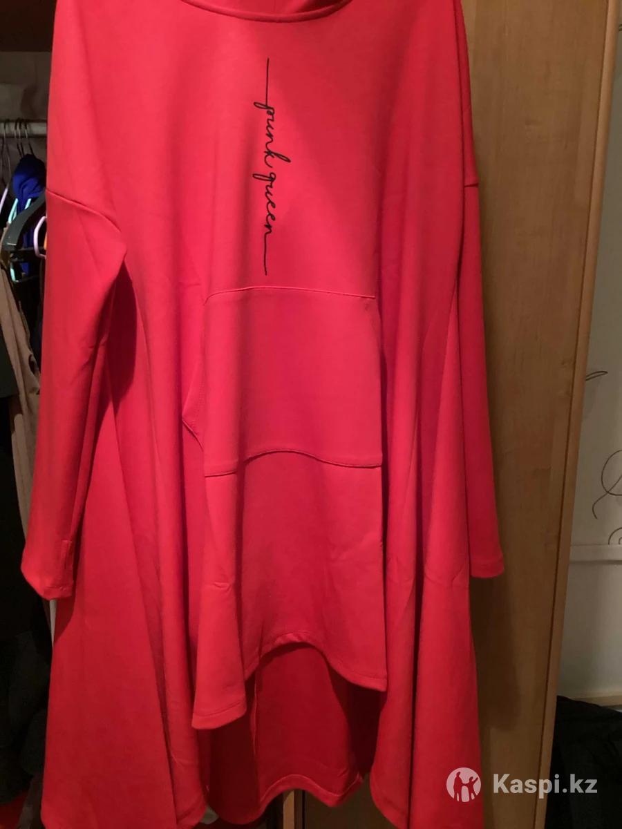 Платье-туника с капюшоном, новое,с этикеткой, Турция, свободного кроя, впереди идет короче, по бокам удлиненая, на фигуру приятной полноты ,размер на 54-56примерно,нужно мерить ,рукав опущен поэтому на любое плечо идет,