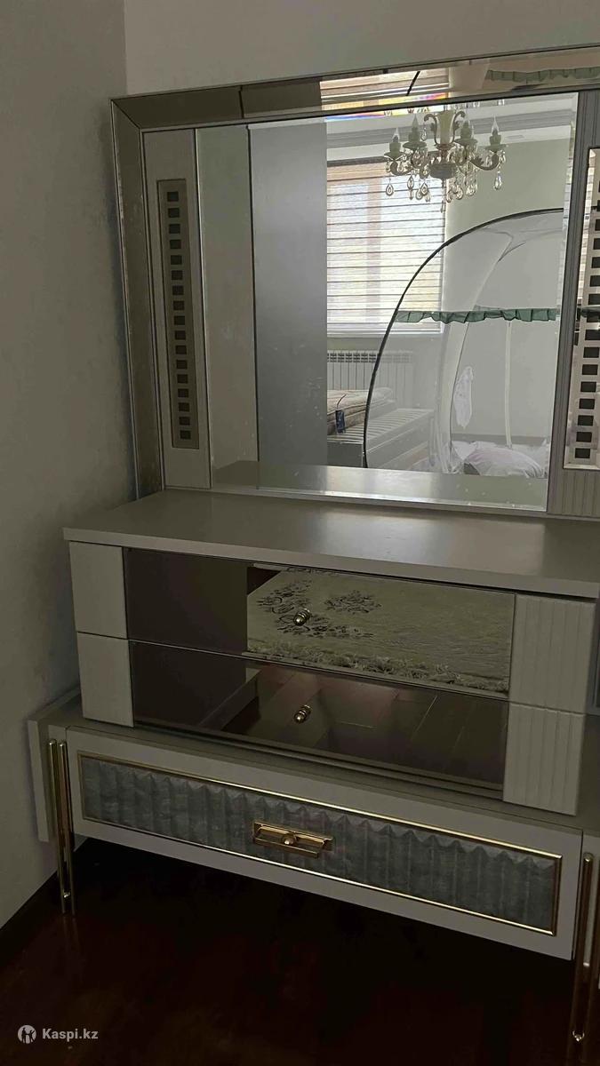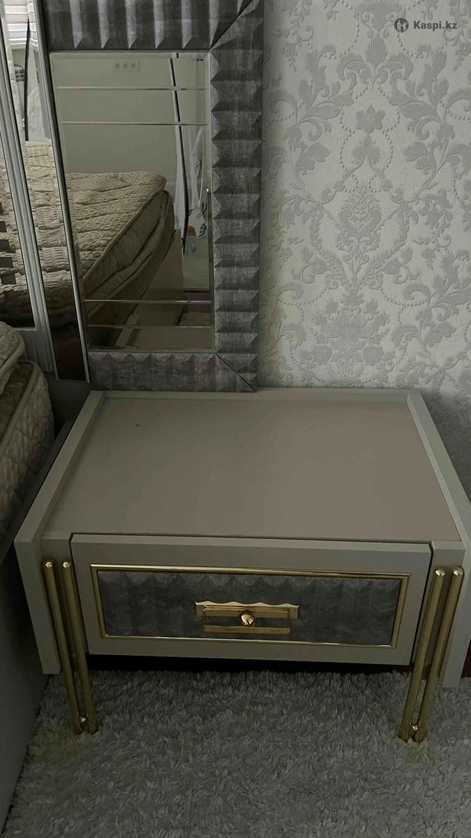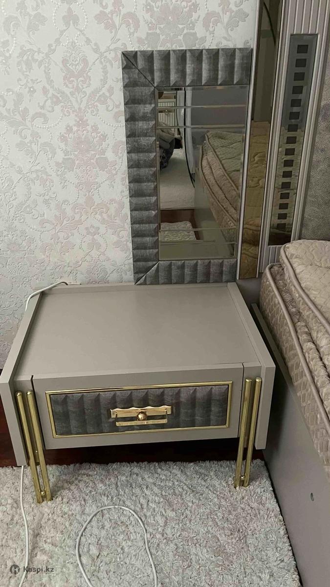 Турецкий спальный гарнитур ASSYL отличное состояние Продаю спальный гарнитур в модерн стиле: кровать 180×200, две прикроватные тумбы, шкаф купе и комод с зеркалом. Натуральное дерево, очень крепкий, в отличном состоянии. Использовался аккуратно, из некурящего дома. Продаем в связи с переездом. Ортопедический матрас покупала отдельно. Отдаю все вместе 800 000 тг Позвонить или писать на номер