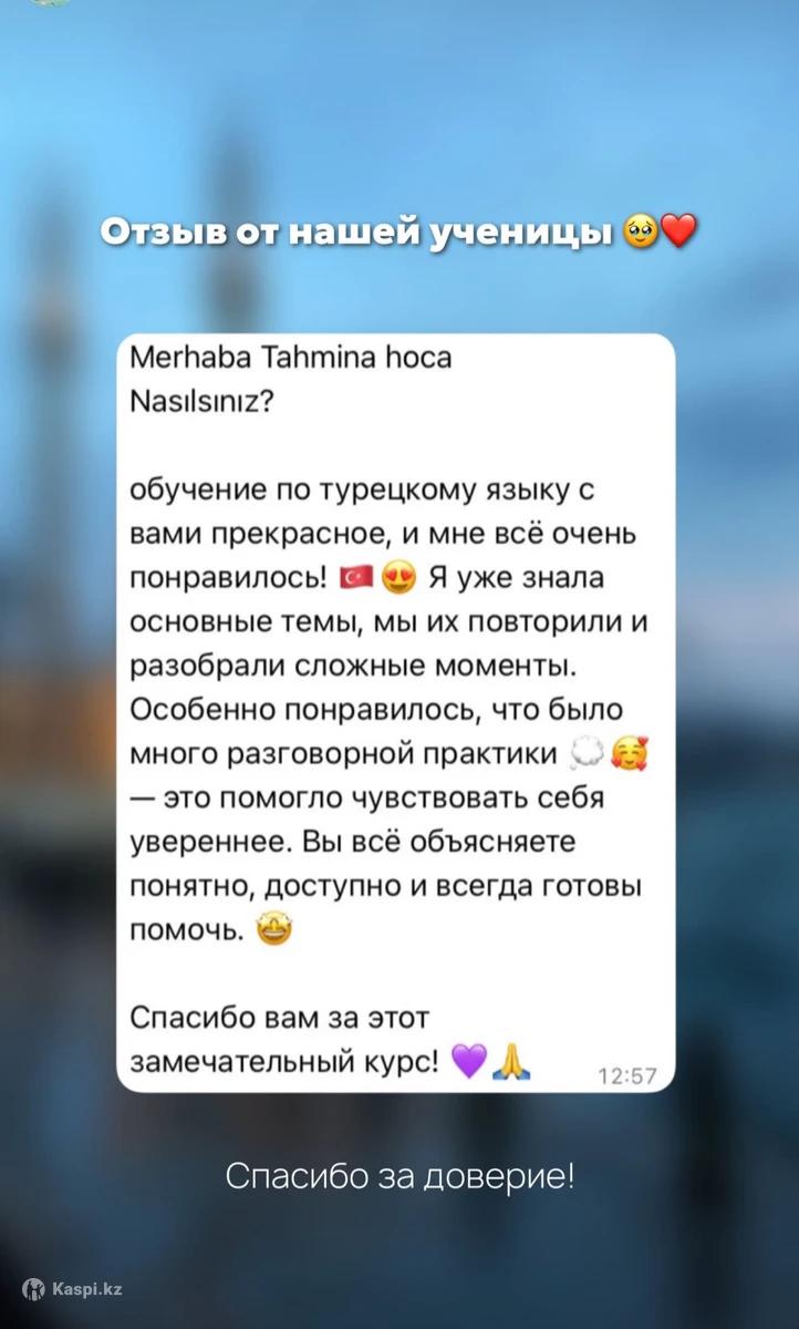 ✨ Набор в группы по турецкому языку! ✨ 📚 Для уровней A1–C1 👩🏫 Занятия с носителями и без 🕒 3 раза в неделю по 1 часу 👩🎓 Группы по 3 ученицы 💰 Стоимость: 21.990 тг вместо 25.000 тг — успейте записаться!
