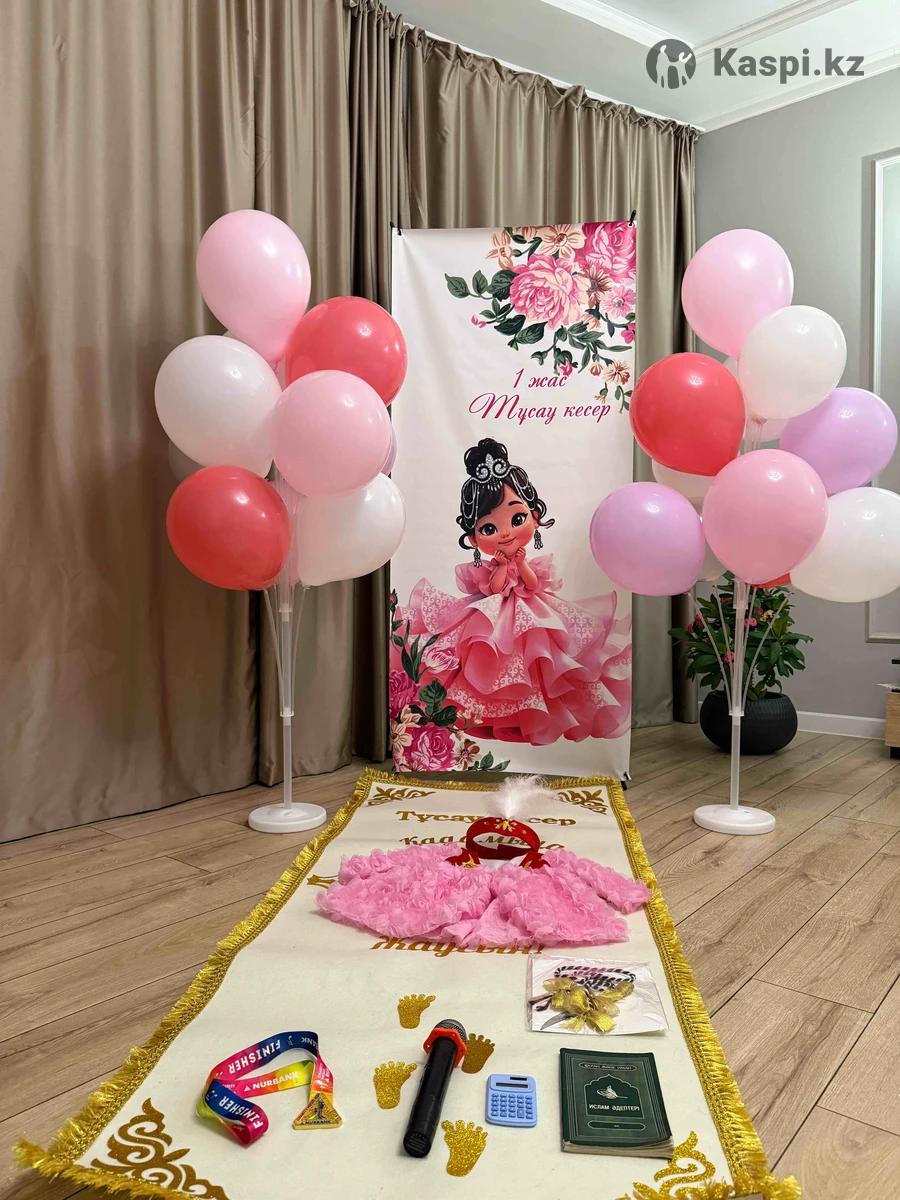 Тұсау кесер набор Банер с каркасом 180/80 Фонтар шар с двух сторон Дорожка Национальный костьюм для мальчика или платья Ала жіп Пышақ Алдына қоятын заттар домбыра ,камшы ,микрафон,медаль