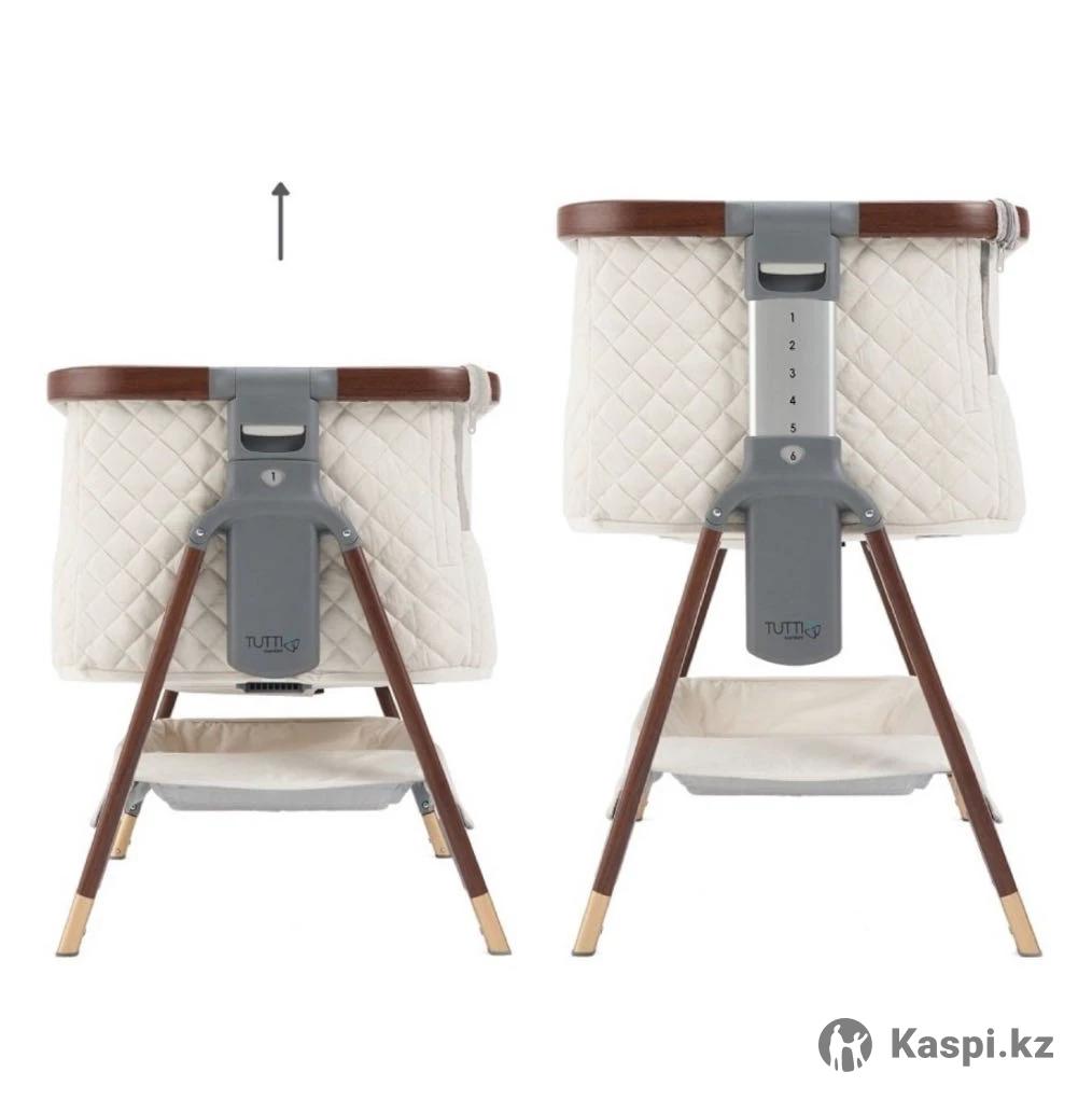 Tutti Bambini колыбель, продольный маятниковый механизм для детей от 0 до 6 мес. Идеально для совместного сна, сложить можно за 30 секунд. Люкс версия. Можно регулировать угол наклонения, установив разные высоты в изголовьях. Есть дополнительные аксессуары матрас, сумка для переноски, ремни для крепления к родительской кроватки, и деревянная качалка.