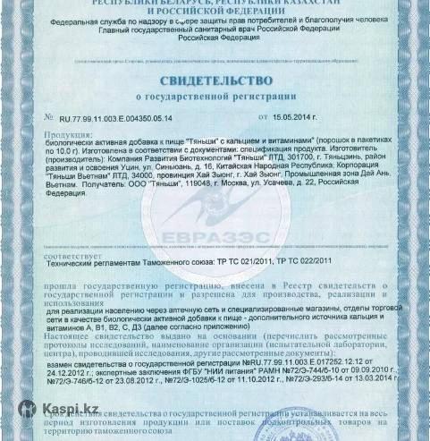Еще больше кальция и витаминов! • Восполнить дефицит кальция в организме • Предупредить развитие остеопороза • Регулирует уровень сахара в крови и баланс питательных веществ • Повысить физическую и умственную активность • Усилит сопротивляемость организма стрессам Идеальный баланс кальция и витамина D3. «Тяньши» с кальцием и витаминами специально разработан для людей с повышенным уровнем сахара в крови, соблюдающих диеты, страдающих сахарным диабетом. Благодаря тыквенному порошку не только насыщает организм кальцием, но и регулирует сахар в крови. Преимущества: – Идеально сбалансированные активные компоненты участвуют в нормализации обмена веществ в организме, формировании костей и зубов, регулируют работу сердца, уровень сахара в крови и нервную деятельность. – Дополненная формула натуральных компонентов способствует насыщению организма витаминами А, В1, В2, С. Действующие вещества: сухое обезжиренное молоко, порошок ферментированного костного кальция, какао-порошок, порошок тыквы обыкновенной, витамины C, В1, В2, А, D3. Применение: взрослым по 1 пакетику (10 г) 2 раза в день во время еды, запивая водой или смешивая с пищей. Противопоказания: индивидуальная непереносимость компонентов, гиперкальциемия, фенилкетонурия. Не является лекарственным средством.