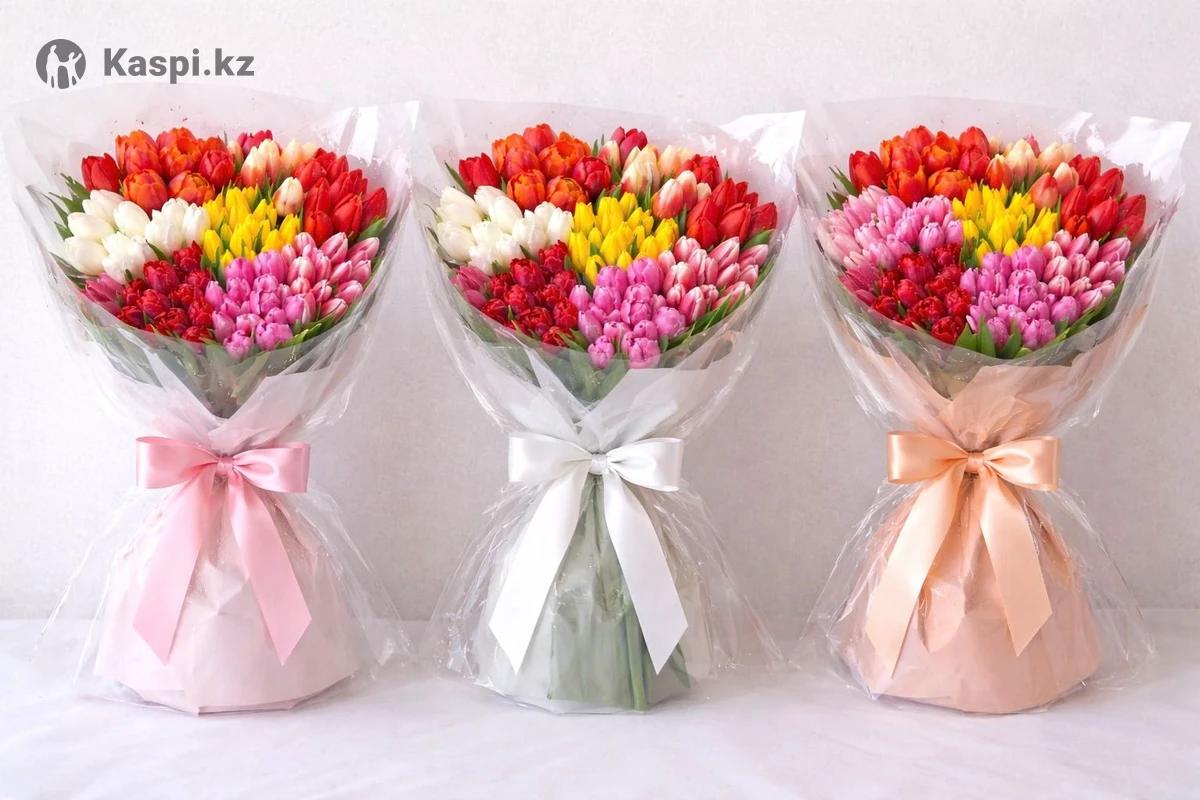 Тюльпаны оптом и штучно, с оформлением. С луковицей, 60-70см. На напишите фото и видео отправлю. Оптом 600тг. Штучно 800тг. Крупные красивые