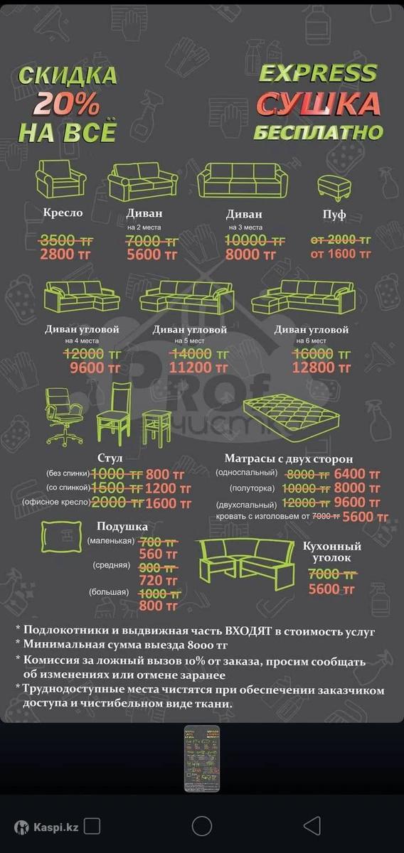 Здравствуйте вас приветствует клининговая компания "Чистый Мир" Предлагаем Качественную уборку всех видов помещений! Уборка,квартир ,коттеджей. Влажная уборка Генеральная уборка Химчистка мягкой мебели. После ремонта от 450 за к.м цена зависит от степени загрязнения Так же работаем с парогенератором Karcher. Режим работы 9:00 до 22:00 Пенсионерам и постоянным клиентам действует скидки!!!