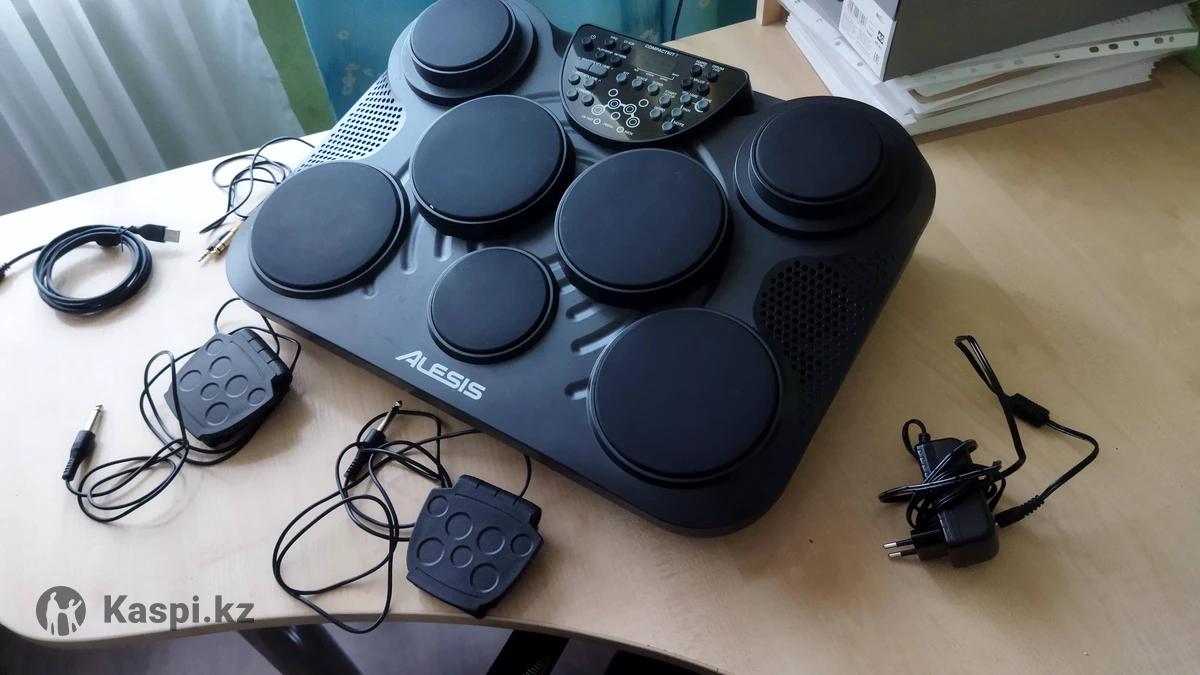 Удобная и компактная барабанная установка. В отличном состоянии, использовалась всего около недели. Возможен торг. Компактная электронная барабанная установка с семью высококачественными чувствительными к скорости нажатия пэдами. Эта модель выдает очень натуральный звук и прекрасно передает ощущения, возникающие при игре на настоящей акустической ударной установке. Установка очень удобна и проста в использовании, она прекрасно подойдет для начинающих, обучающихся игре на ударных инструментах, а также для тех, кто не является и не планирует стать профессиональным барабанщиком. Модель оснащена контрастным светодиодным дисплеем, на котором наглядно отображаются текущие настройки, также есть дополнительные светодиоды, показывающие, по какому из пэдов Вы ударяете. Предусмотрено 45 пресетов плюс пять пользовательских, библиотека включает 256 вариантов перкуссионного звучания и 100 композиций, под аккомпанемент которых Вы можете играть. Играть можно не только палочками, но и руками, используя опцию «Hand Percussion». Есть встроенный метроном, а также возможность записывать свою игру. Записи сохраняются даже после отключения установки. Для соединения с компьютером и работы с записями в DAW приложениях предусмотрен разъем USB-MIDI.