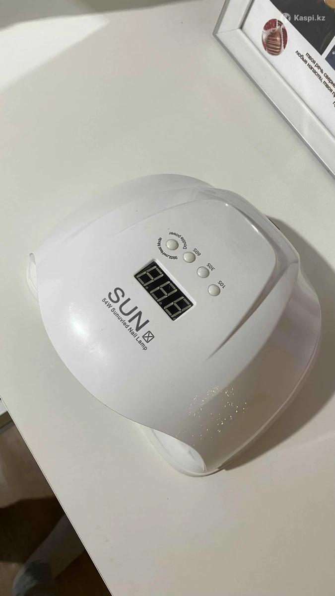 Светодиодная УФ-лампа 54 Вт для маникюра, исправно работает, имеет таймер 10-30-60 сек с автоотключением, автоматический датчик движения. В комплекте имеется шнур и нижняя подставка.