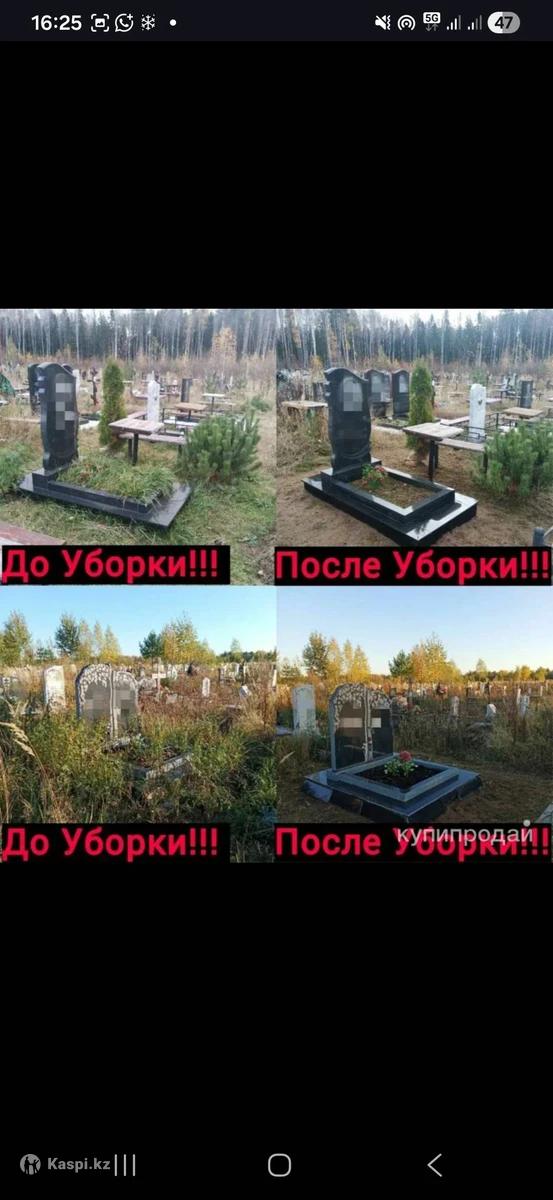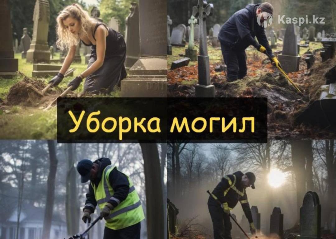 Уход ,уборка ,чистка могилок и памятников . Разовые и постоянные уборки . Благоустройства и ремонт оградок и памятников . Без выходных . Видео и фото отчеты . Цены самые низкие у нас . Выезд по городу Алматы и Области.