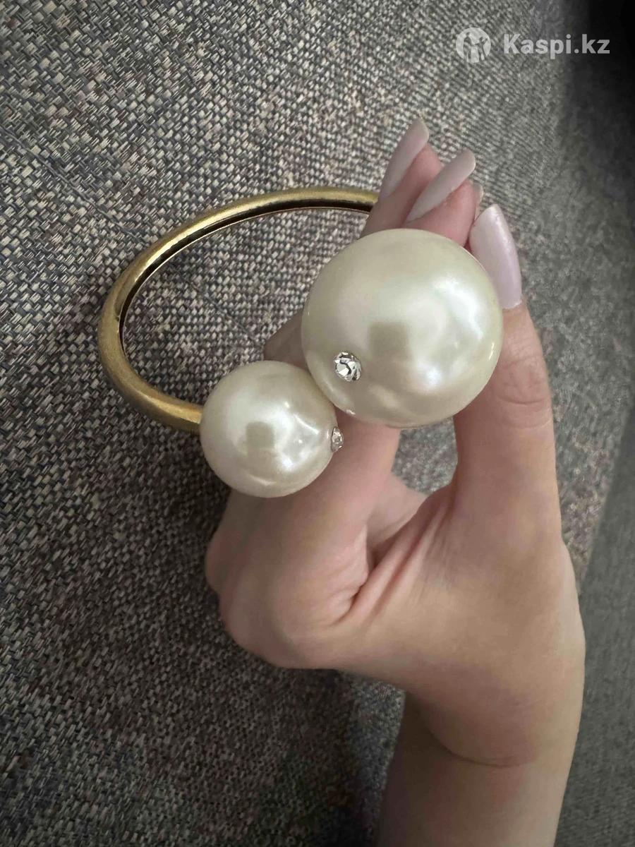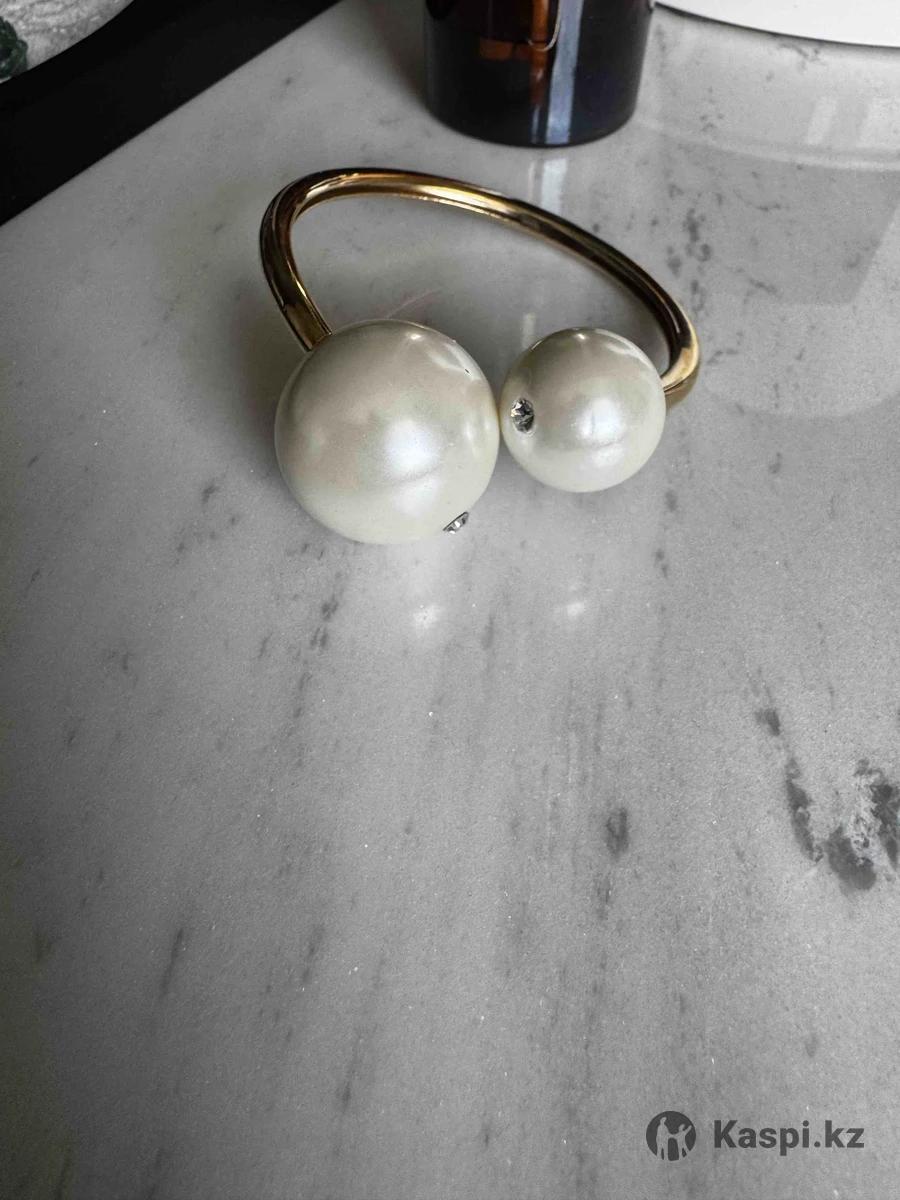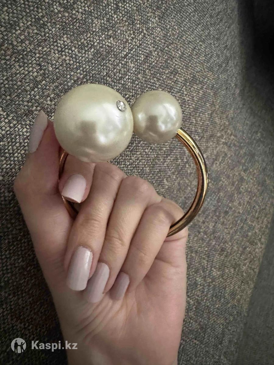 Браслет в золотом исполнении с искусственными жемчужинами, пластик. Диаметр 62 мм, на тонкую руку