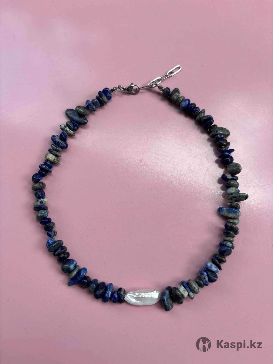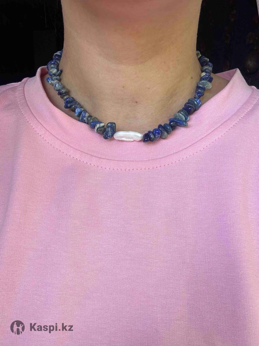 Украшение из натуральных камней Чокер из лазурита и натурального жемчуга, длина 40см + удлинитель 5 см