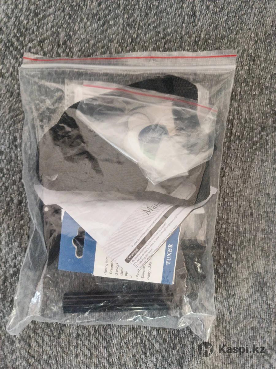Купили чтобы учиться но забросили. В комплекте идет: чехол, ремень, струны, тюнер, каподастр, ключ для намотки струн, держатель медиаторов, медиаторы