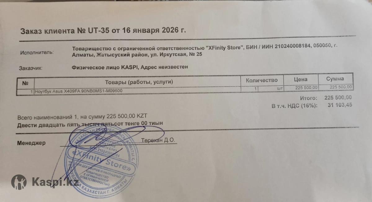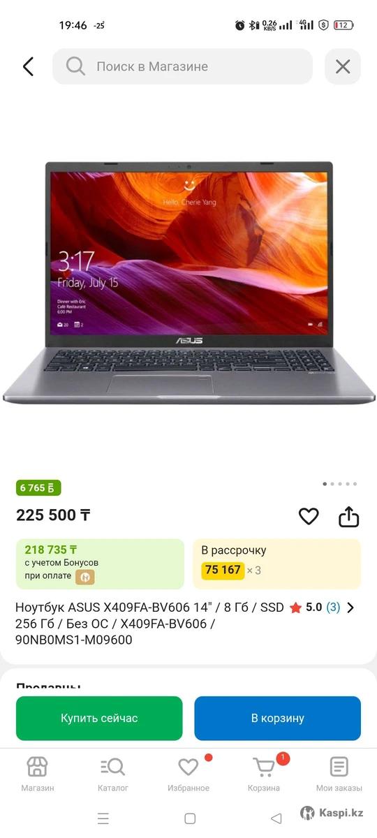 Абсолютно новый ультрабук от Asus. Был куплен 16.01.26. За 225 500тг Ещё на гарантии. Полностью готов к работе. Все необходимые программы и утилиты установлены. Подсветка клавиатуры. Легкий и компактный,Дисплей NanoEdge, Технология SuperBattery (Защита аккумулятора) Батарейка держит заряд примерно 5 часов. Всего 14 циклов зарядки. 1)Получите более широкий взгляд на мир Дисплей NanoEdge обеспечивает ASUS X409 обширную область экрана для приятного 2)Стильный и портативный С общим весом всего 1.5 кг 3)Насыщенный кристально чистый звук ASUS SonicMaster - это сочетание аппаратного, программного обеспечения и настройки звука, разработанное с целью предоставить вам наилучшее качество звука Характеристики: Экран: 14 Процессор: Intel Core I3 10110U 2.10GHZ Оперативная память: DDR4 8GB, расширяется до 16GB Память: 256 SSD Видеокарта: Интегрированная (Intel HD Graphics) Порты и связь: USB 3.2, USB 2.0, HDMI, RJ-45, Wi-Fi, Type-S. Bluetooth, 3.5mm jack.