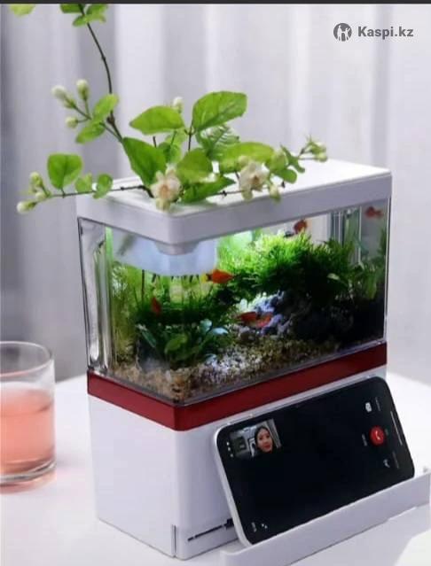 Продам аквариум встроенная система отчиски (самп)заряженный керамикой несколько губок. работает от зарядки для телефона сенсорное управление 5 режимов изменения подсветки таймер включения отключения можно заряжать телефон ящичек он же подставка для телефона размер 25×22×11.5см компактный красивый и многофункциональный грунт лавовая крошка декорации приклеены с завода рыбки петушок 1шт 2гуппи 1 анциструс, улитки живые растения анубиас мох в комплекте