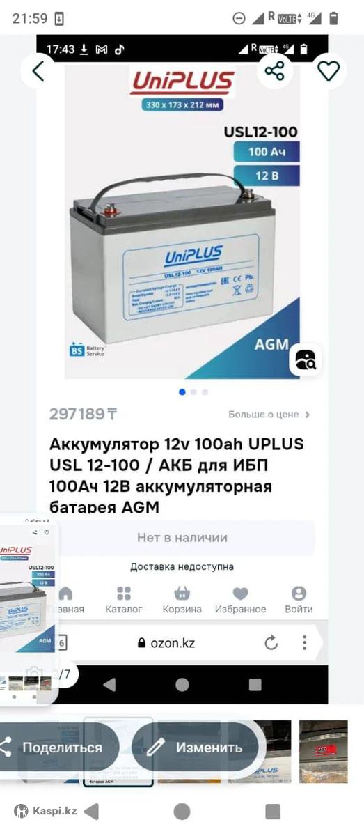 Аккумулятор UPLUS 12V ,100 Aмпер в час в отличном , рабочем состоянии ,не высаженный,был в автодоме ,пользовались редко .Можем отправить индрайвером , при необходимости Новый стоит на озоне почти 300.000 тысяч