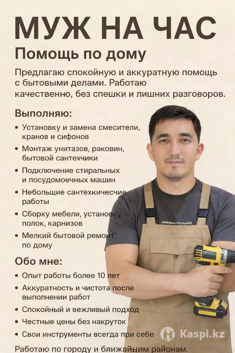 •🔧 Мелкий ремонт по дому •🚪 Установка и ремонт дверей, замков •🪑 Сборка и разборка мебели •🖼️ Навеска полок, картин, карнизов, телевизоров •🚿 Сантехника: смесители, сифоны, унитазы •💡 Электрика: розетки, выключатели, люстры •🪟 Ремонт окон и фурнитуры •🛠️ Помощь по дому и офису Преимущества: •Выезд в день обращения •Чисто и аккуратно