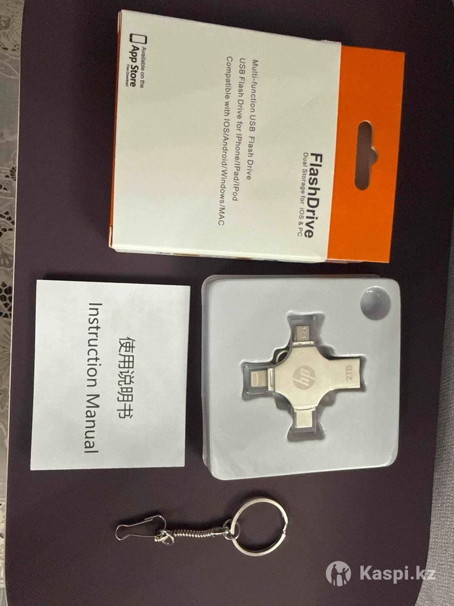 Новая USB флешка 2TB (iPhone / Android / ПК). Многофункциональная флешка с четырьмя разъемами для iPhone, Android, Type-C и компьютера. Один носитель - для всех устройств. Подходит для фото, видео и документов, можно переносить без интернета. Компактная и простая в использовании. Объем: 2TВ Цена 8500 тенге.