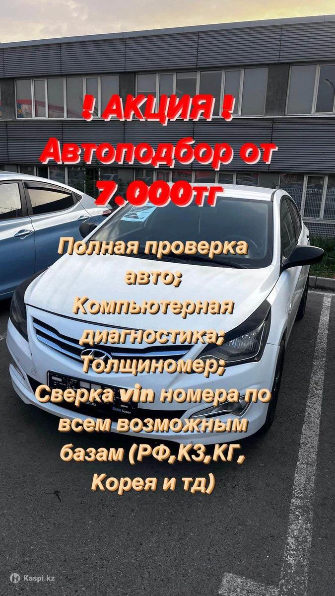 Услуги автоподбора и помощь в покупке автомобиля в г.Алматы. Мы можем проверить автомобиль за вас, сэкономим ваши деньги и время. Опыт в автоподборе более 5 лет. Диагностика толщиномером с выездом от 7.000 тг Услуги автоэксперта - проверка автомобиля по всем параметрам кузовных деталей, мотора, коробки, салона, вин номера, истории автомобиля, документов. При желании можем отправить отчет в Pdf формате. Стоимость от 10.000 тг. Услуга АВТОЭКСПЕРТ НА ДЕНЬ. С 9 утра до 6 вечера будем на моем личном автотранспорте искать автомобиль по вашим запросам, количество автомобилей не ограничено от 45.000тг Подбор авто под ключ (договорная). Фото и видео отчет на или .