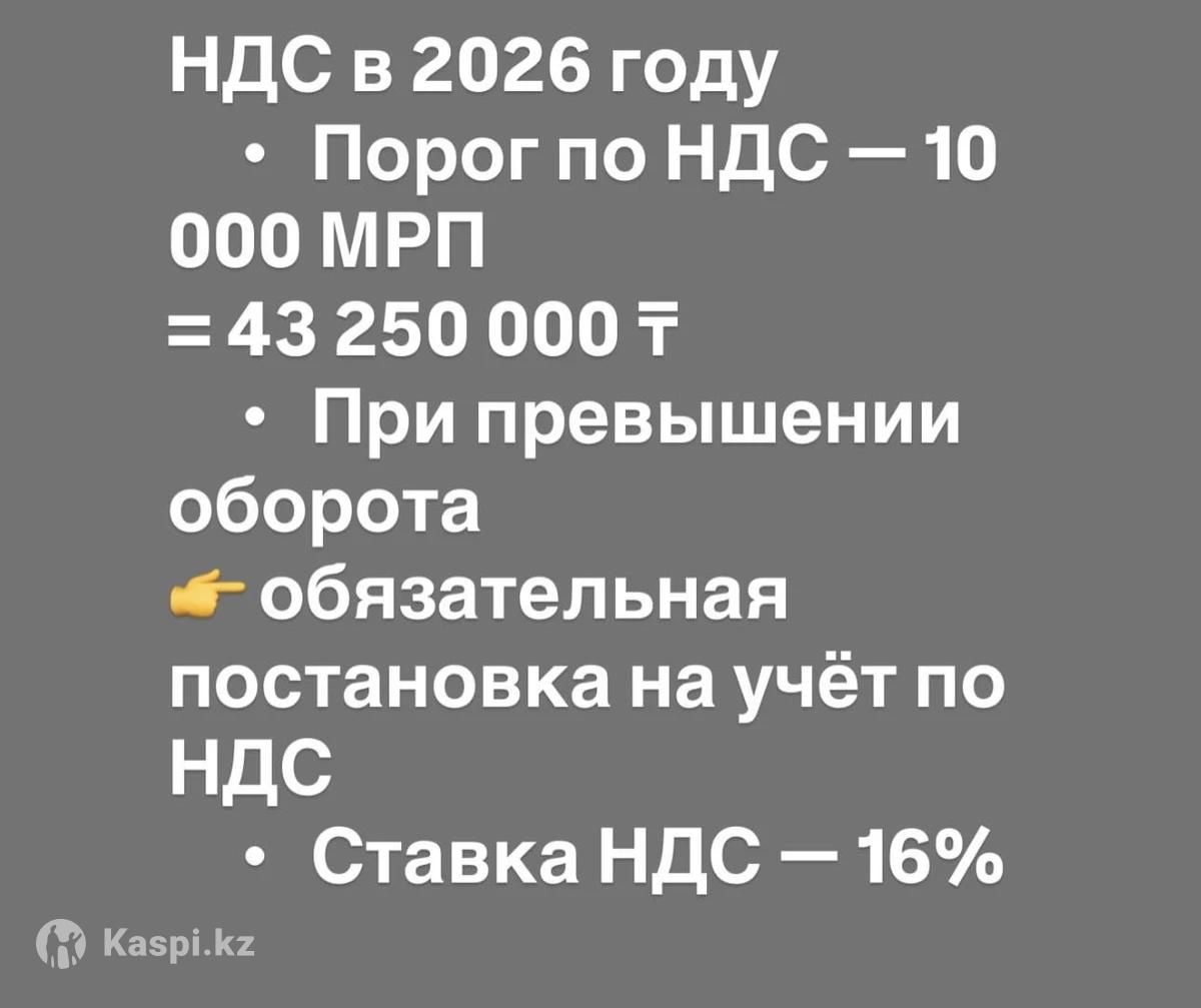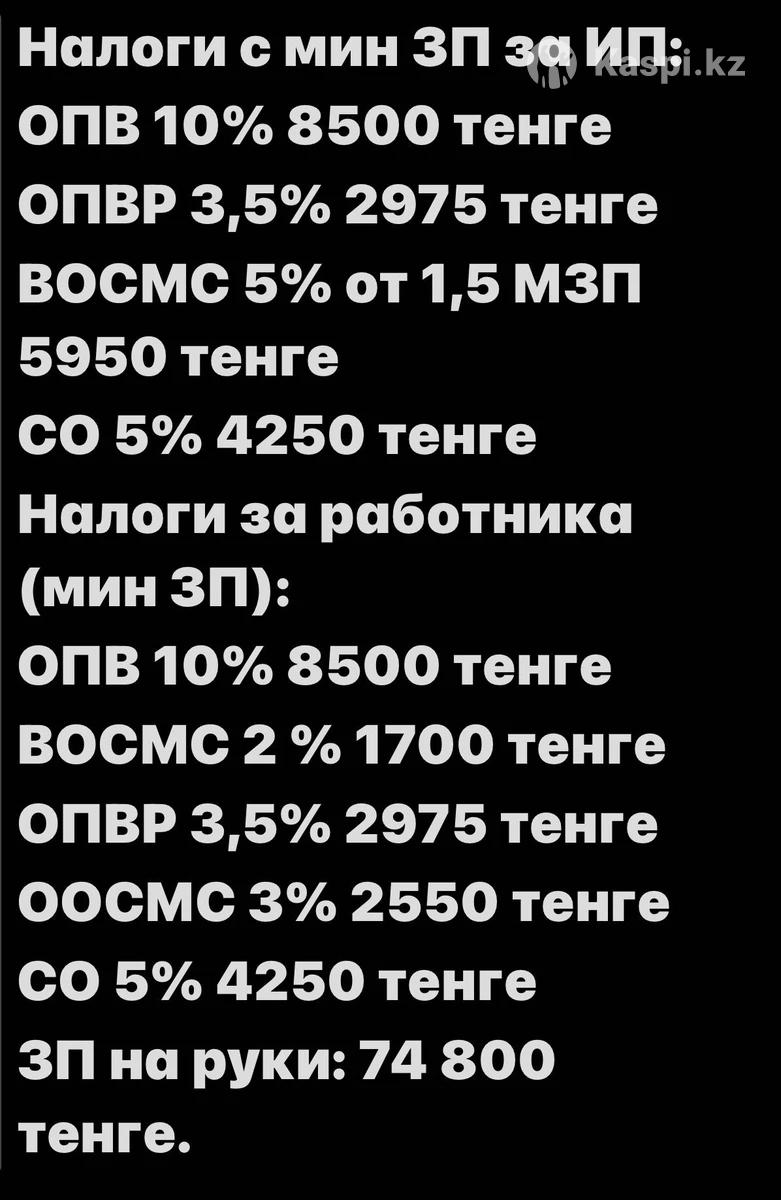 Профессиональные бухгалтерские услуги удаленно. Цены могут меняться в зависимости от объема работы. Закрытие ИП - от 30 000 тг. Составление и сдача налоговой отчетности: ИП на СНР - ф. 910 - от 15 000 тг. ИП на ОУР - ф. 200 - от 15 000 тг. ИП на ОУР - ф. 220, ф. 300 - от 30 000 тг. Ведение ИП на СНР - от 40 000 тг. в месяц Ведение ИП на ОУР - от 70 000 тг. в месяц Первичная документация по отдельности: Счет на оплату - 1 000 тг. Авр/накладная - 3 000тг. ЭСФ - 5 000 тг. ТТН - 2 000 тг. Первичная документация общим пакетом документов: Счет на оплату, авр/накладная, ЭСФ, учет ЭДО - 7 000 тг.