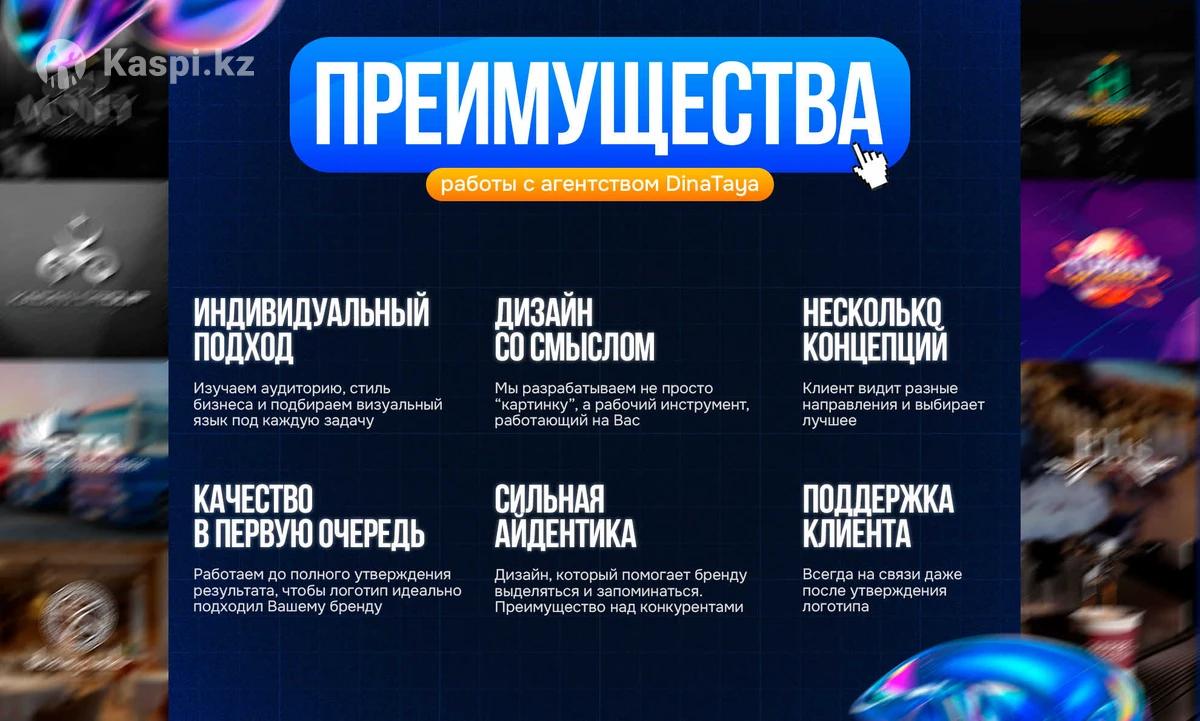 Разработка качественных логотипов, отражающих суть бренда. Ваш Логотип — Ваше лицо, то, с чем сталкивается клиент. Оно должно отражать суть и ценности одним лишь взглядом. [Принимаю срочные заказы 24/7] Приветствую! Меня зовут Дина, и я занимаюсь разработкой графического дизайна любой сложности и детализированности. От минималистичных макетов до более ярких решений. Основными направлениями являются: — Логотипы и фирменный стиль; — Инфографика для маркетплейсов [Карточки для Каспи, Озон, ВБ); — Меню. Помимо них, я занимаюсь: • Баннеры, плакаты и вывески; • Посты для Instagram и дизайн рекламных материалов; • Грамоты, сертификаты и благодарственные письма; • Флаеры, рекламные листовки и брошюры; • Визитки и прайс-листы; • Веб-дизайн, разработка дизайна сайтов/приложений в Фигме (UI/UX); • Иллюстрации и создание оригинальных персонажей, маскоты; • Обложки для книг и соцсетей (Reels, TikTok, Instagram, YouTube); • Дизайн упаковок и разработка общего стиля для соцсетей; • Дизайн ЛЮБОЙ полиграфической продукции. Я — всесторонний специалист, и люблю свое дело! Преимущества при работе со мной: — Индивидуальный подход: Учитываю все ваши пожелания и идеи для достижения наилучшего результата. — Быстрая обратная связь: Оперативно отвечаю на вопросы и готова к обсуждению любых правок. — Качество и креативность: Каждое решение — это уникальная работа, выполненная с учетом современных трендов. — Широкий спектр услуг: От логотипов и меню до упаковок и иллюстраций — все в одном месте. — Своевременное выполнение: Гарантирую соблюдение сроков, даже при срочных заказах. — Профессионализм: Мой опыт и навыки позволяют создавать работы, которые помогают вам выделиться. — Поддержка после завершения: Готова оказать помощь и внести изменения даже после завершения проекта. Сотрудничество со мной — гарантия качественного результата. Если у вас возникли вопросы, не стесняйтесь писать на (номер в профиле). Больше моих проектов доступно в Instagram (dinataya . kz)! С нетерпением жду возможности сотрудничества!