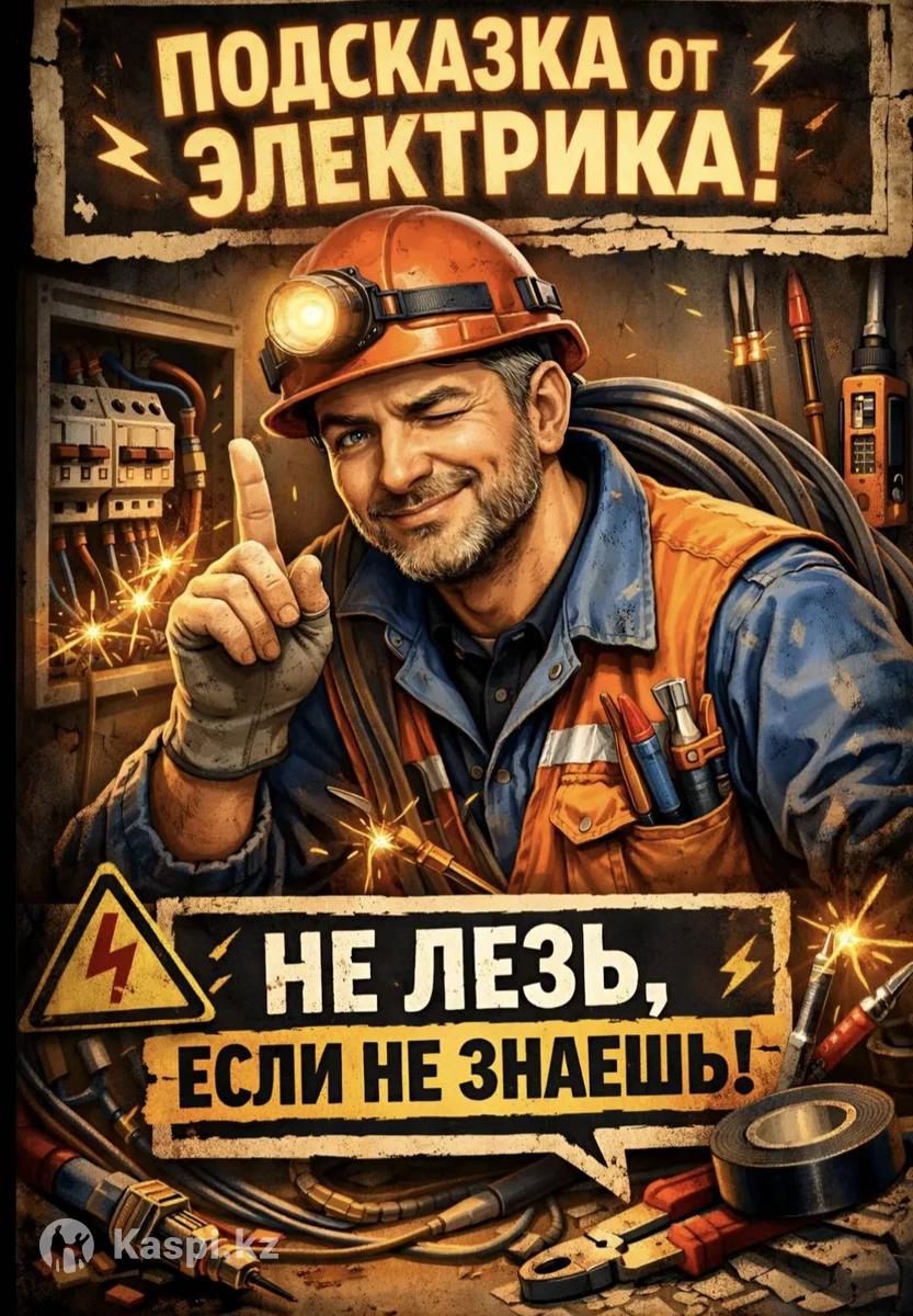 Услуги электрика выезд от 6000тг и выше, на смотрины стоит приехать и посмотреть кто понимает и уважает потраченное время на его проблемы тот поимет правильно. Если мы с вами договорились и работаем эта сумма входит в оплату за работу. цены индивидуальны по каждой работе своя цена, ретро проводка , вынос счетчиков на дома, дачи, гаражи от 35.000тн и выше , замена проводки на новую, Установка счетчиков с распределением нагрузок и установки автоматов, прокладка воздушного провода, подключение и прокладка кабеля для электро плит, европереносы розеток и выключателей, подключение и Установка диодных лент в шкаф купе, кухню, прихожку, на потолки, арки, Установка люстр и бра, штробовка и прокладка кабеля в стенах. Замена розеток, выключателей. Пишите бывает в работе не слышим звонок.